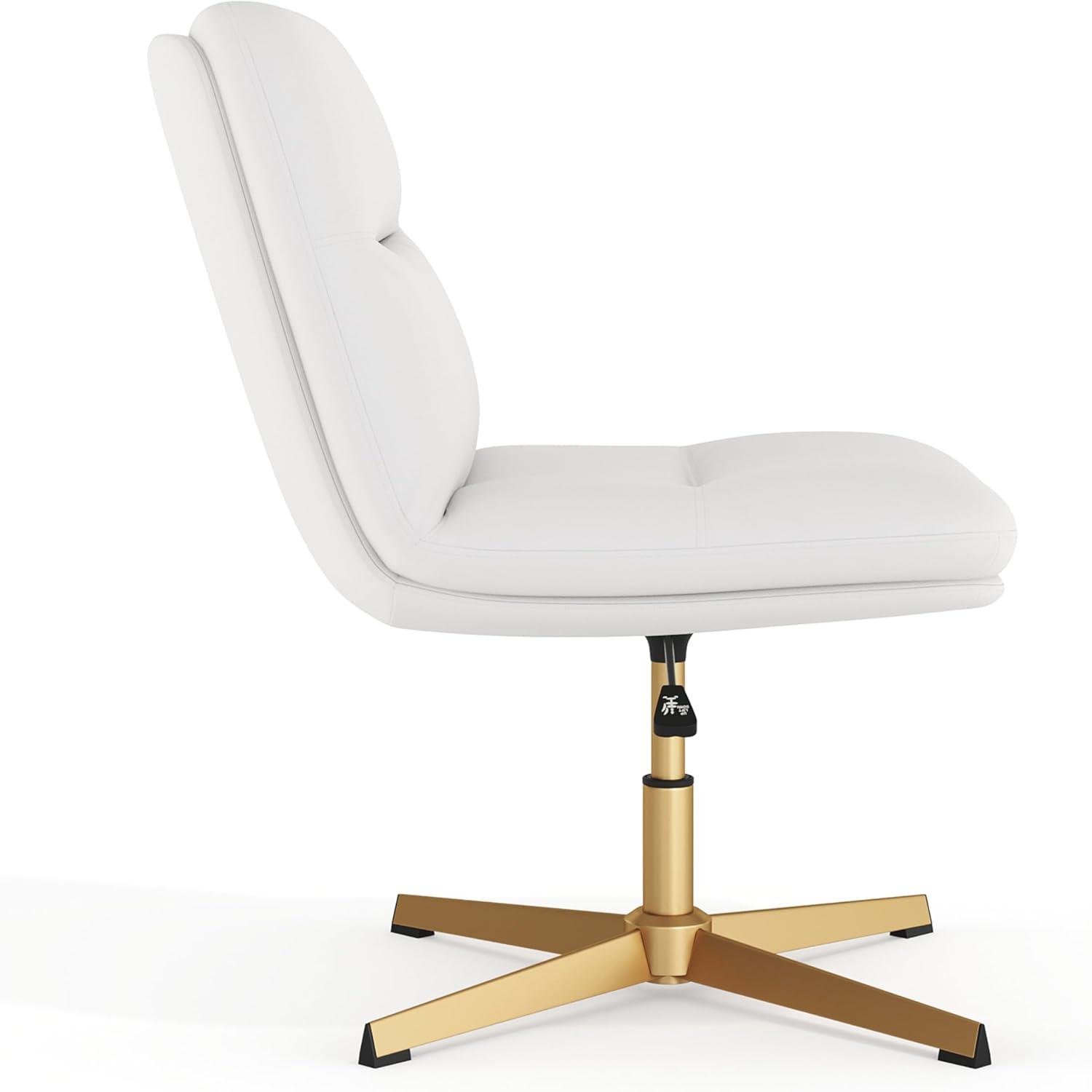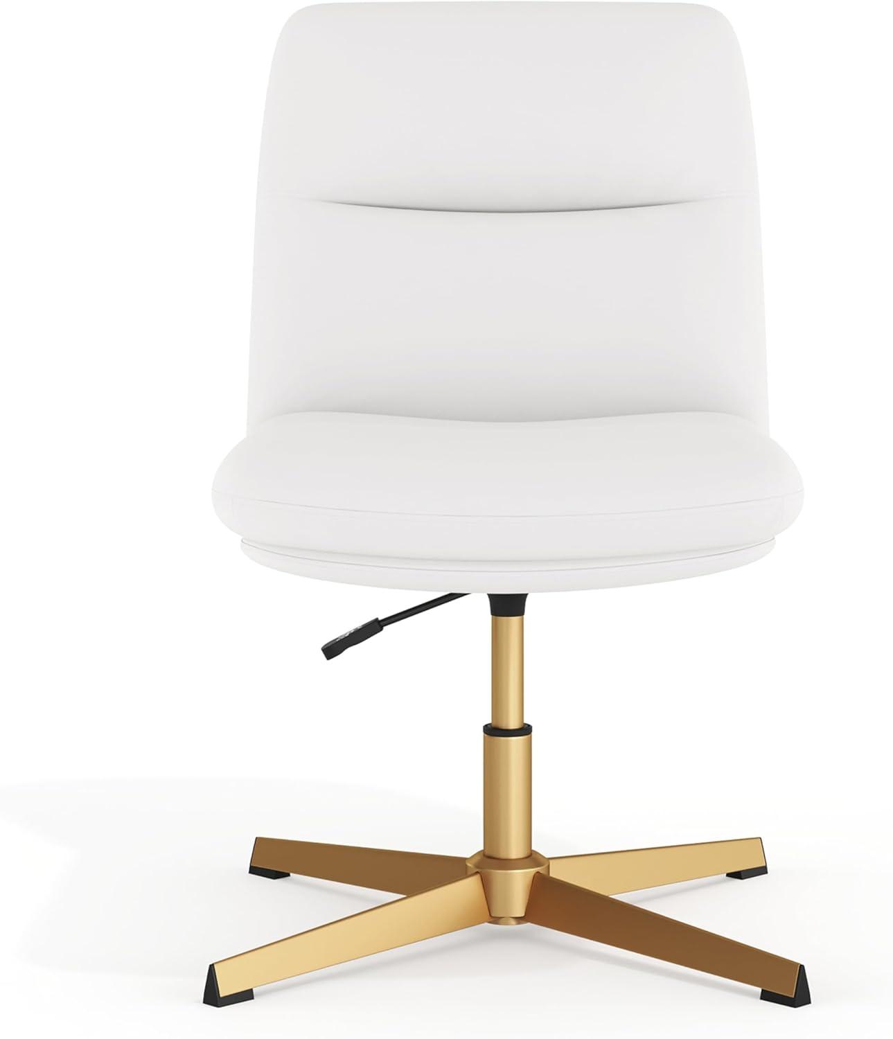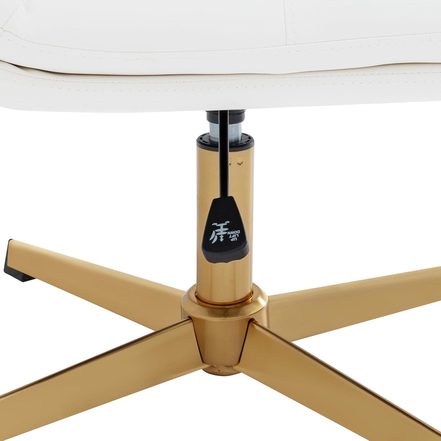 The white and gold finish brings a fresh and sophisticated vibe to any office setting, effortlessly blending modern elegance with a touch of luxury. Its clean, crisp white upholstery contrasts beautifully with the gleaming gold base and accents, creating a refined aesthetic that enhances both home workspaces and vibrant commercial offices.The minimalist, armless silhouette accentuates this chair’s sleek profile, allowing it to complement various interior styles without overwhelming the room’s decor. The smooth LeatherSoft upholstery not only looks inviting but also adds a subtle sheen that reflects light gracefully, making the chair a stunning focal point where style meets function.