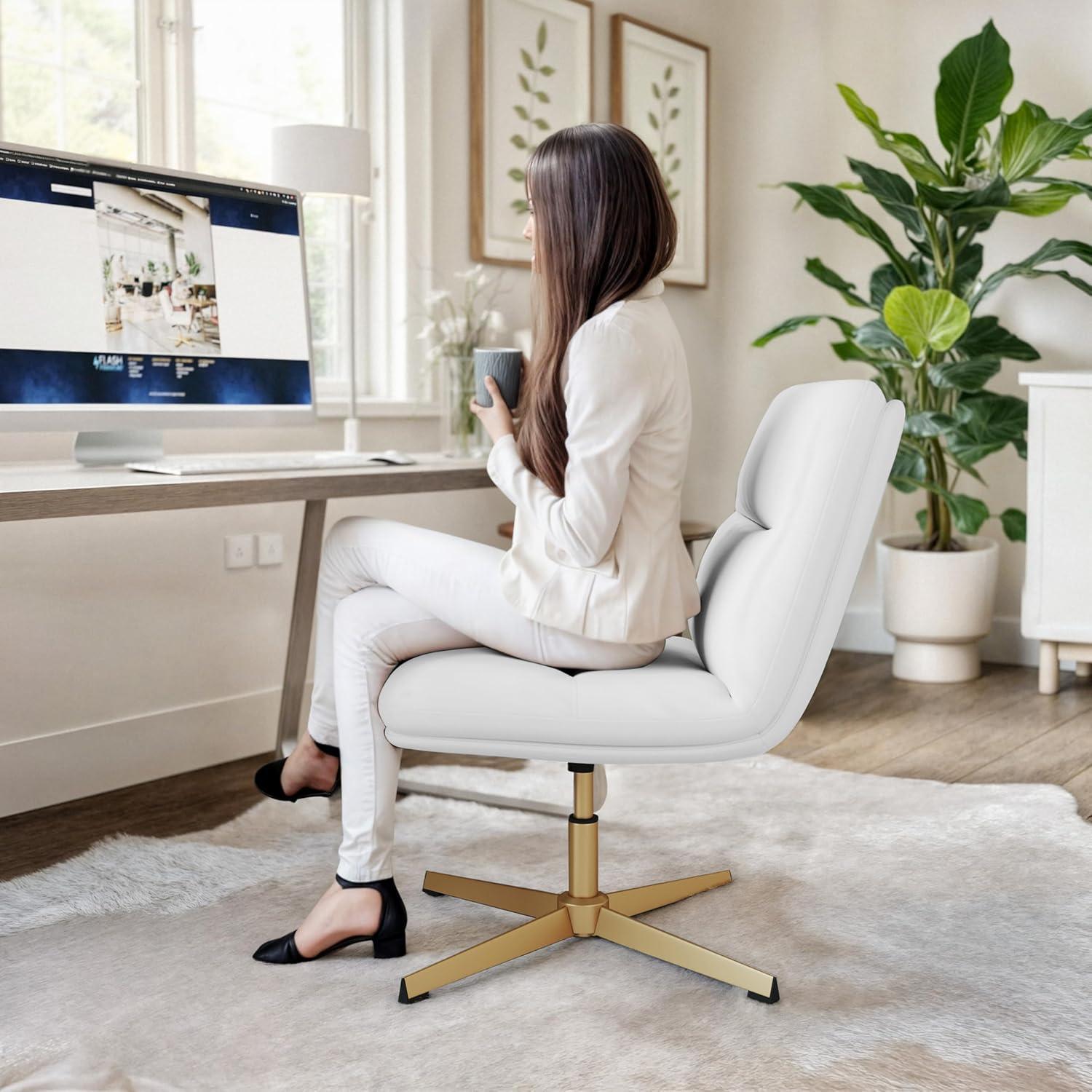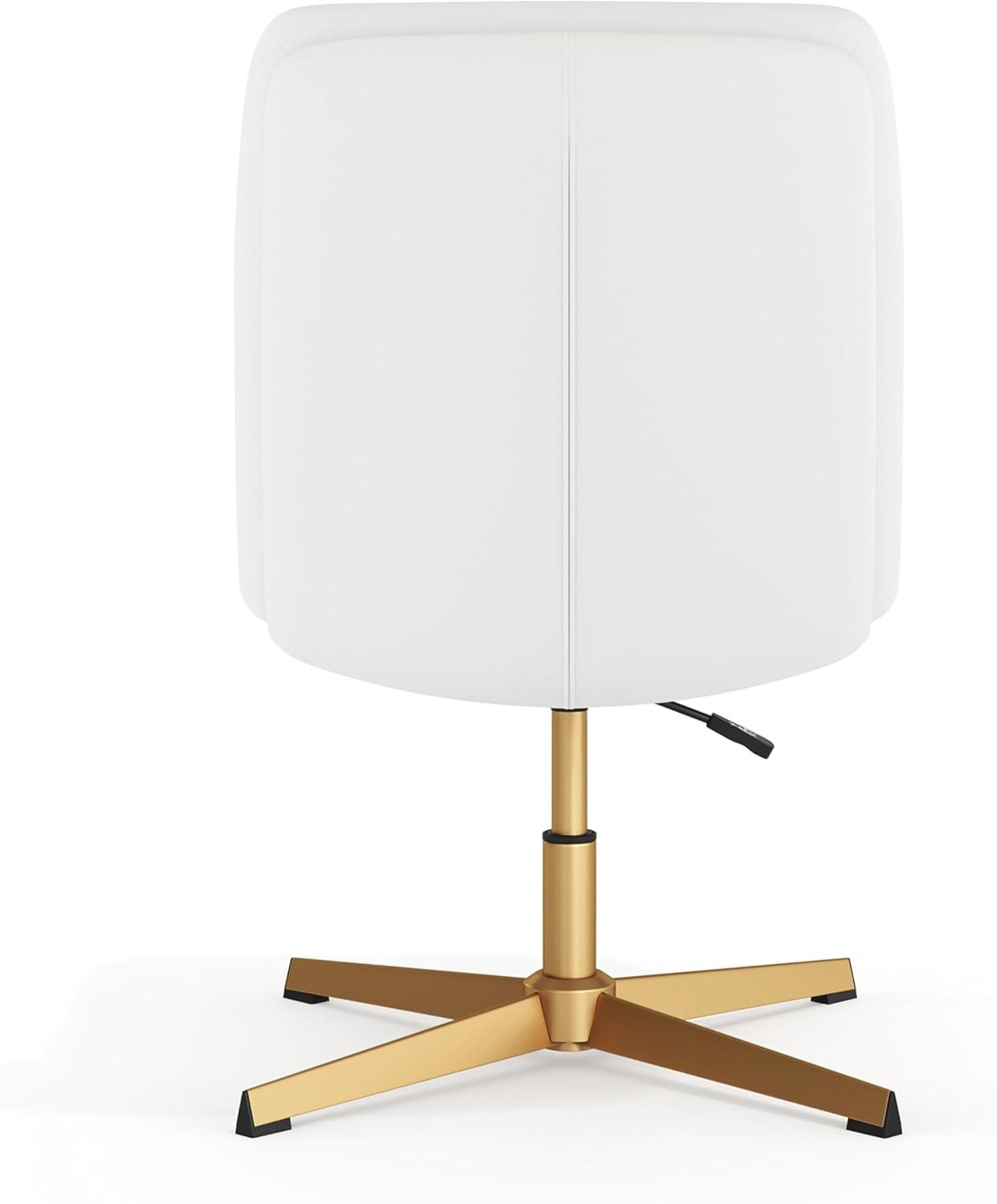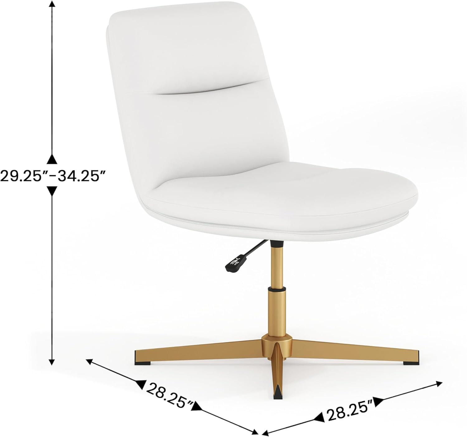 The white and gold finish brings a fresh and sophisticated vibe to any office setting, effortlessly blending modern elegance with a touch of luxury. Its clean, crisp white upholstery contrasts beautifully with the gleaming gold base and accents, creating a refined aesthetic that enhances both home workspaces and vibrant commercial offices.The minimalist, armless silhouette accentuates this chair’s sleek profile, allowing it to complement various interior styles without overwhelming the room’s decor. The smooth LeatherSoft upholstery not only looks inviting but also adds a subtle sheen that reflects light gracefully, making the chair a stunning focal point where style meets function.