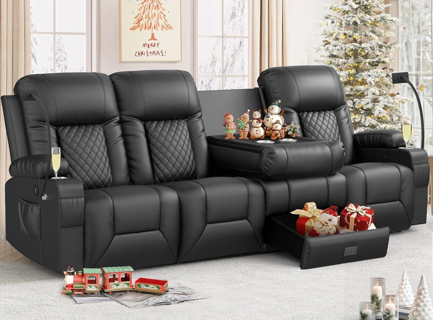 You notice, over time, how the piece settles into the room — small habits find it and it takes on the silhouette of everyday life. With the Recliner Sofa, 4 Seater Dual Reclining Sofa with Flip Back Console, Modern PU Leather Recliner Couch for Living Room/RV, with Storage Drawer, USB Ports, Cup Holder, cell Phone Holder, Black, the sense of comfort becomes the way cushions give where you sit and how an armrest holds the weight of a hand rather than any polished first moment. Surface wear shows up as softening lines and a few scuffs, and it quietly reshapes how space is used in daily routines and regular household rhythms. It stays.