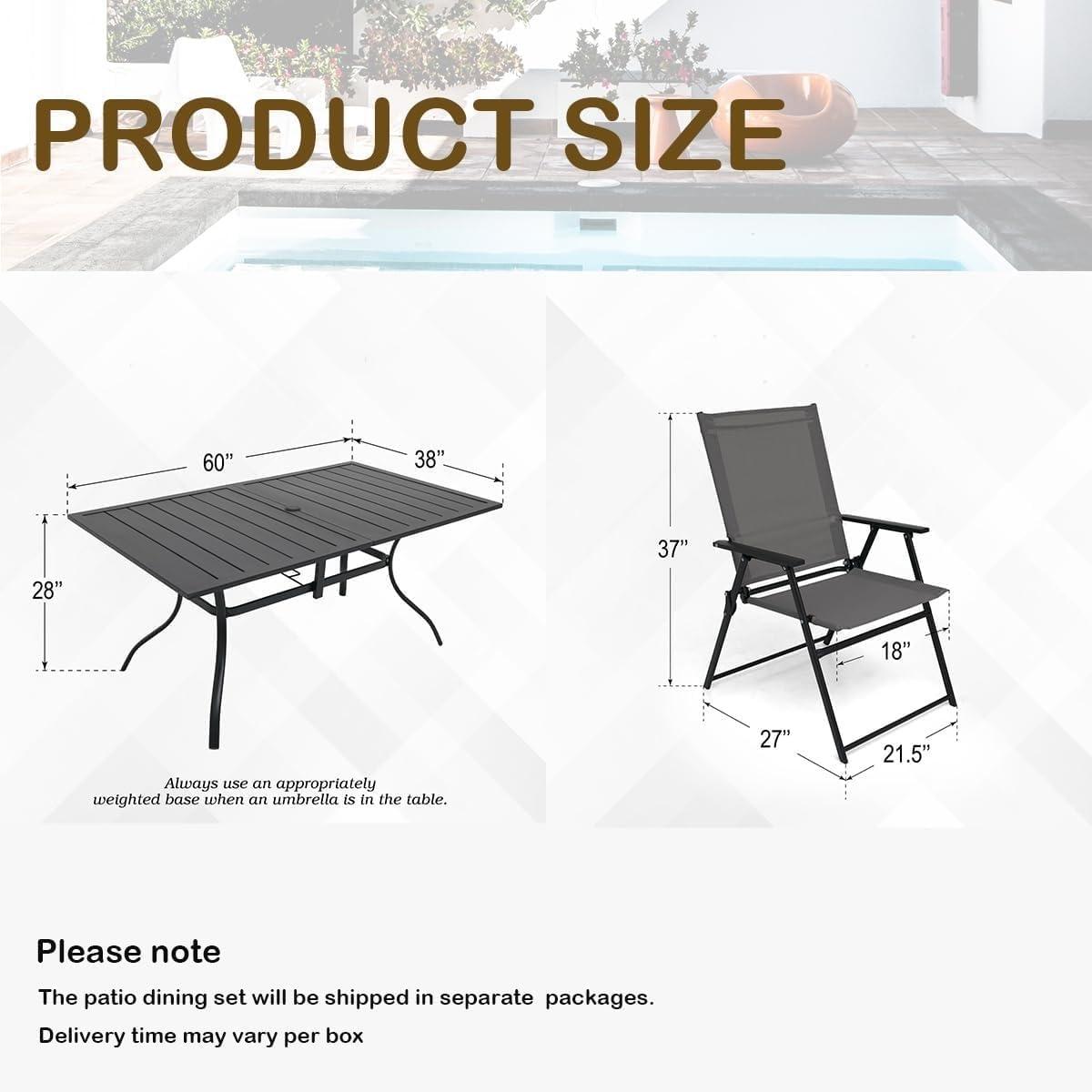 When it comes to outdoor furniture, durability and comfort are paramount, and this set delivers on both fronts beautifully. The rectangular dining table features a sturdy metal tabletop with a thoughtfully integrated umbrella hole, accommodating most patio umbrellas with ease. Its robust frame ensures stability while maintaining a sleek, modern look in matte black and grey tones that blend seamlessly with any garden or deck setting. The folding chairs are especially notable – crafted with reinforced metal frames and breathable, weather-resistant textilene fabric that feels supportive yet light. The ergonomic backrests and wider armrests provide a pleasant seating experience without compromising sturdiness, supporting up to 250 lbs per chair.