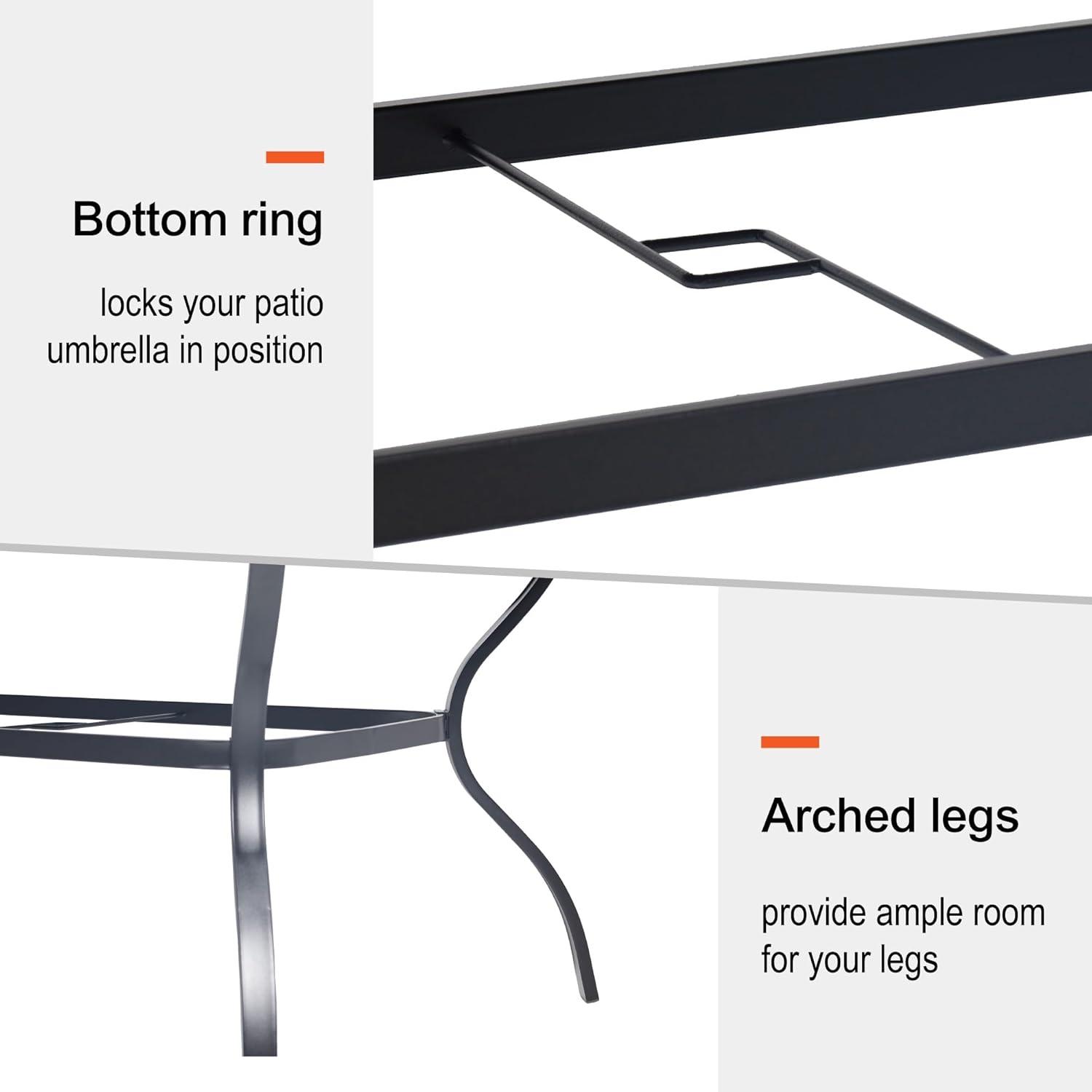 Besides comfort, the umbrella hole keeps our dining area versatile and clutter-free. We no longer need a separate umbrella stand taking up extra space or worrying about tipping over in windy conditions. The table’s sturdy metal top ensures the umbrella stays securely in place, providing stability for extended outdoor use. Here’s a quick overview of the umbrella hole benefits: