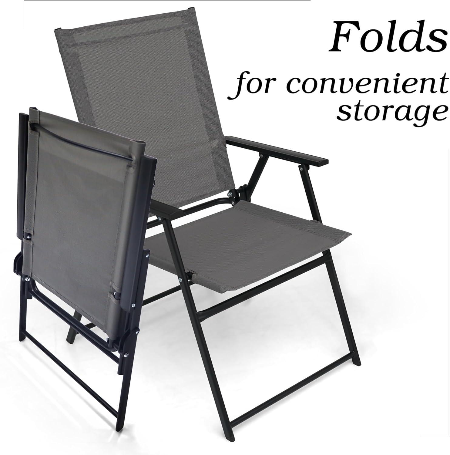 From our experience, the chairs impress with their thoughtfully designed dimensions and materials, making long sit-downs comfortable and enjoyable. The extra-wide 18.3″ seats combined with ergonomic backrests provide ample support, while the wider metal armrests add to the relaxed feel without sacrificing space.The breathable mesh fabric of the seat not only keeps things cool on warm days but also proves easy to clean and remarkably durable against weather elements. Although lightweight and foldable, the reinforced metal frame confidently supports up to 250 lbs, ensuring sturdy seating that doesn’t compromise on stability or comfort.