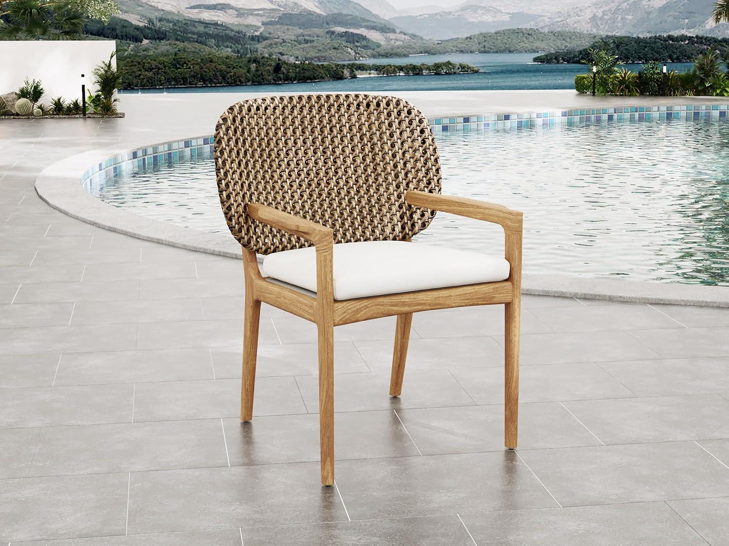We found the armchairs to be impressively pleasant for long dining sessions, thanks largely to their well-proportioned dimensions. The seat height of 17.75 inches and generous width of 26.75 inches allow for a relaxed sitting posture, while the 24.75-inch arm height offers natural support without feeling restrictive. The solid teak wood frame feels sturdy yet smooth, with the ergonomic shape of the arms and backrest designed to cradle us gently. while we haven’t used cushions yet, the option to add custom outdoor fabric cushions enhances the comfort level considerably, especially for extended outdoor meals or gatherings.