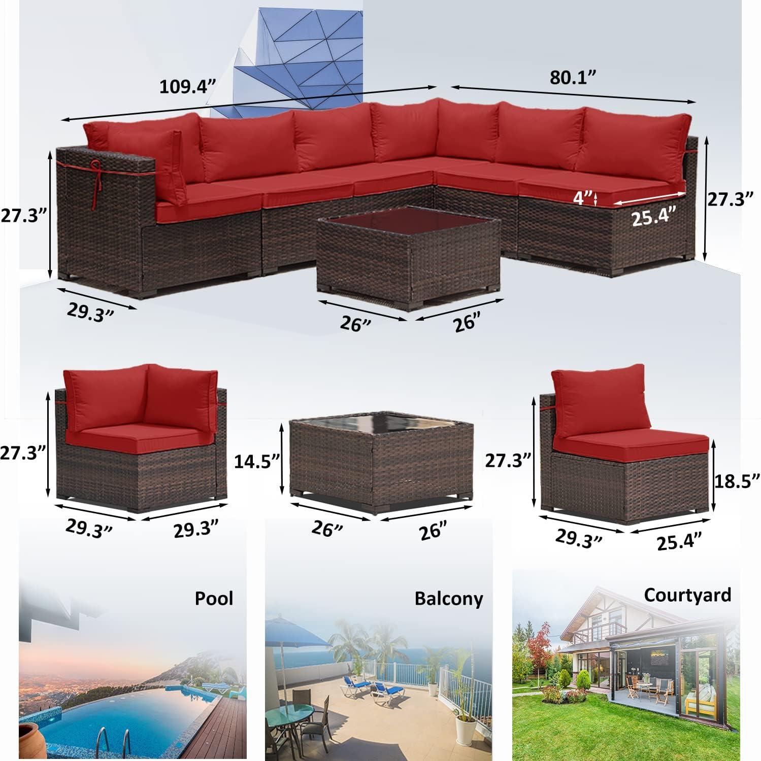 This‍ spacious⁣ patio set‍ combines style and practicality with‍ a ​vibrant red finish that instantly ⁢livens up any outdoor space. Crafted from durable ⁣PE ​rattan woven over a sturdy‌ steel ⁢frame, each ‍seating component promises long-lasting durability and⁢ resistance ‍to weather⁣ elements. The set includes six high-back seats⁣ designed with⁢ ergonomics in mind-featuring 27.5-inch tall‌ backrests and 4-inch‌ wide‌ armrests,​ making it ideal for relaxing ​or entertaining. Thick, resilient cushions made from virgin ⁤PP cotton and upright foam ‍offer plush comfort, while their ‍waterproof and ‍UV-resistant covers help protect against daily wear, although extra care during ‌heavy rain is advised.