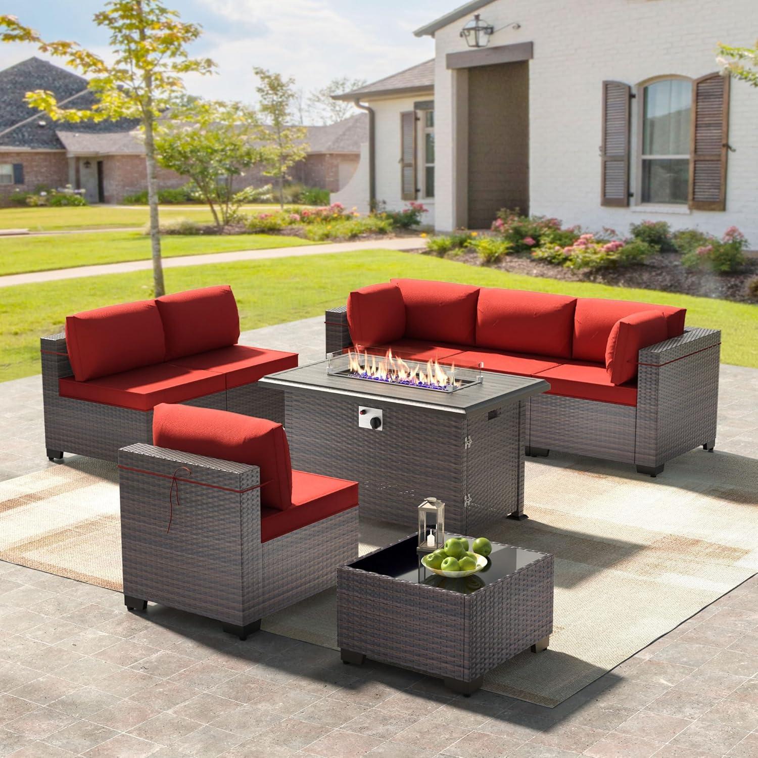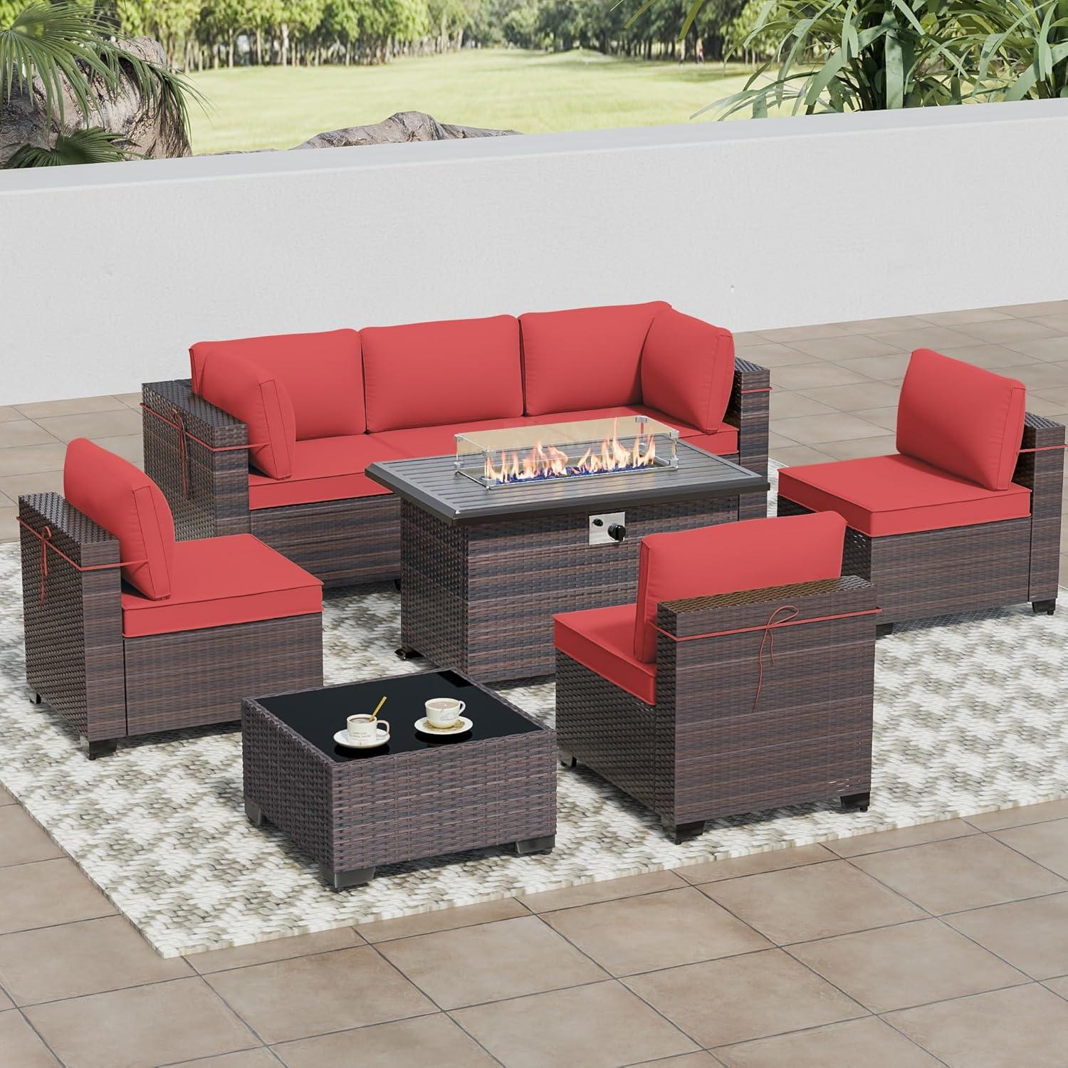 After spending considerable time with this patio set,we ‌can ‌confidently say it delivers⁢ on both style and substance. The design impresses with its rich red tones ⁤and sturdy ‍PE rattan⁣ weave, which ⁣blends elegance with durability. The sectional ⁢pieces are versatile, allowing us to rearrange the seating ⁢effortlessly to fit different occasions-whether hosting a lively‌ gathering ‌or enjoying a quiet evening outdoors.Comfort is⁤ notable thanks​ to the 4-inch thick cushions⁣ that provide excellent support, complemented ⁤by high backrests ‌and wider armrests that make lounging all the more enjoyable. The propane ‌fire pit ⁢table is a star ⁢feature, offering​ a ⁤warm 55,000 BTU heat ‍output‍ and the added functionality ​of a coffee table when⁣ covered, making our ⁤outdoor‌ space usable even⁤ on ‍chilly‌ nights.