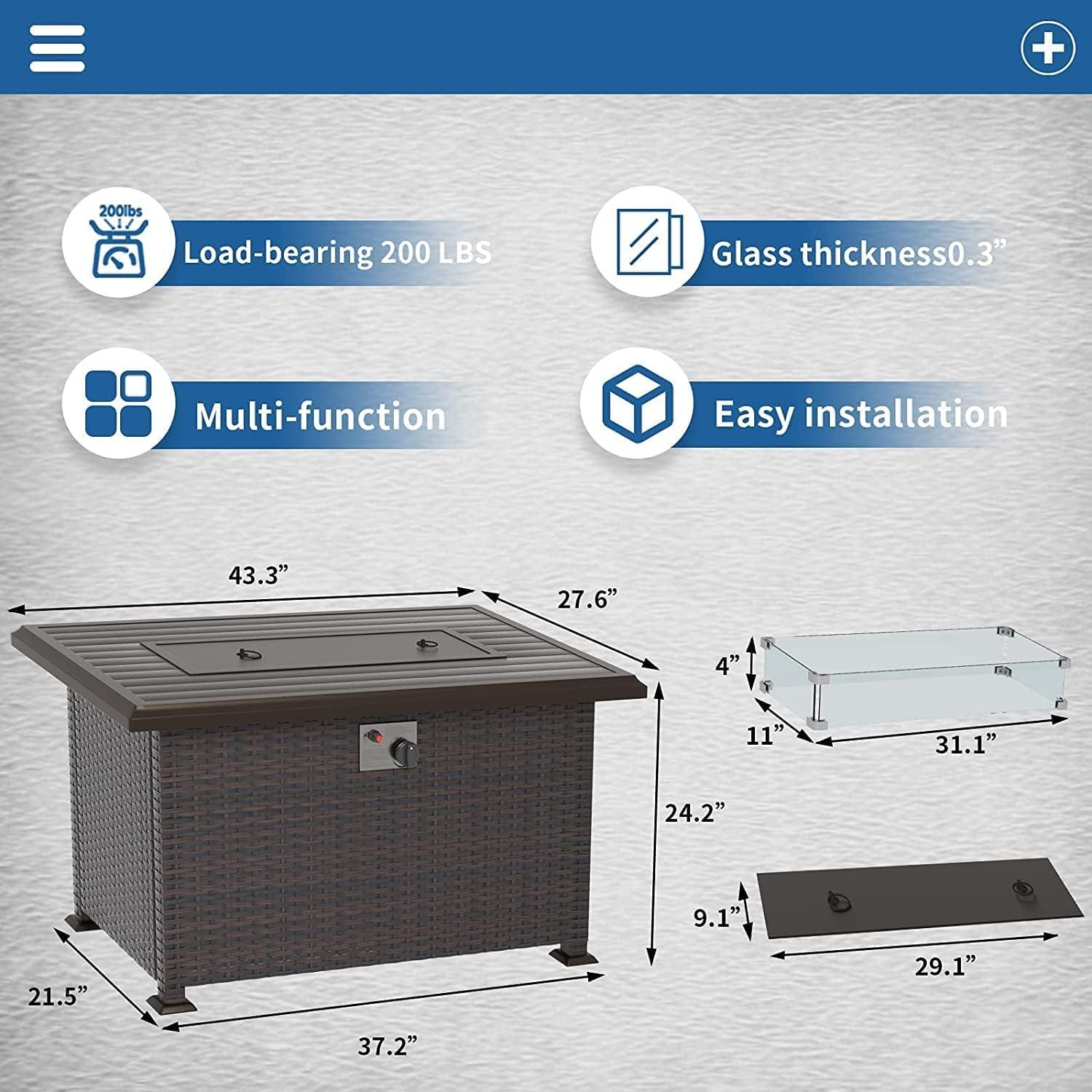 • Fire pit table ‌ doubles ​as a coffee table with tempered glass