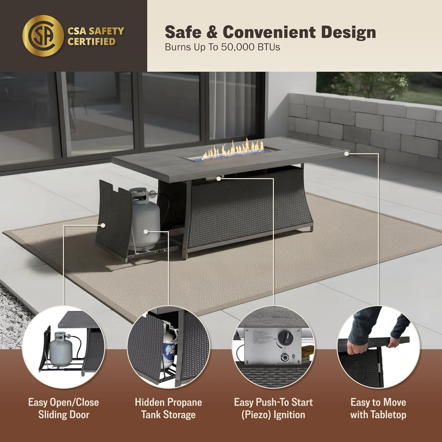 - Spacious fire pit table with a 50,000 BTU propane burner