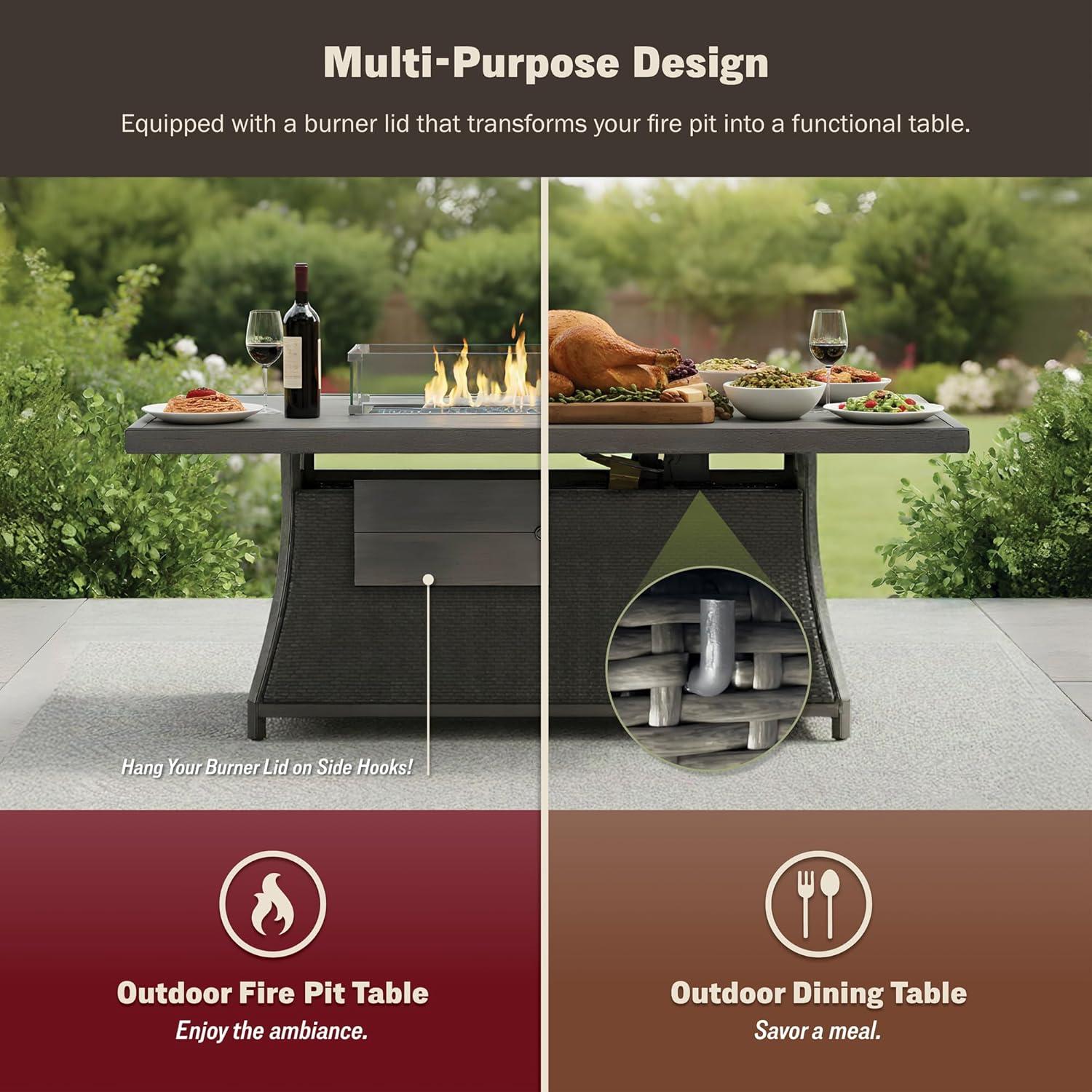 | Fire Pit Table Size | 76 inches, ample space for warmth and surface use |
