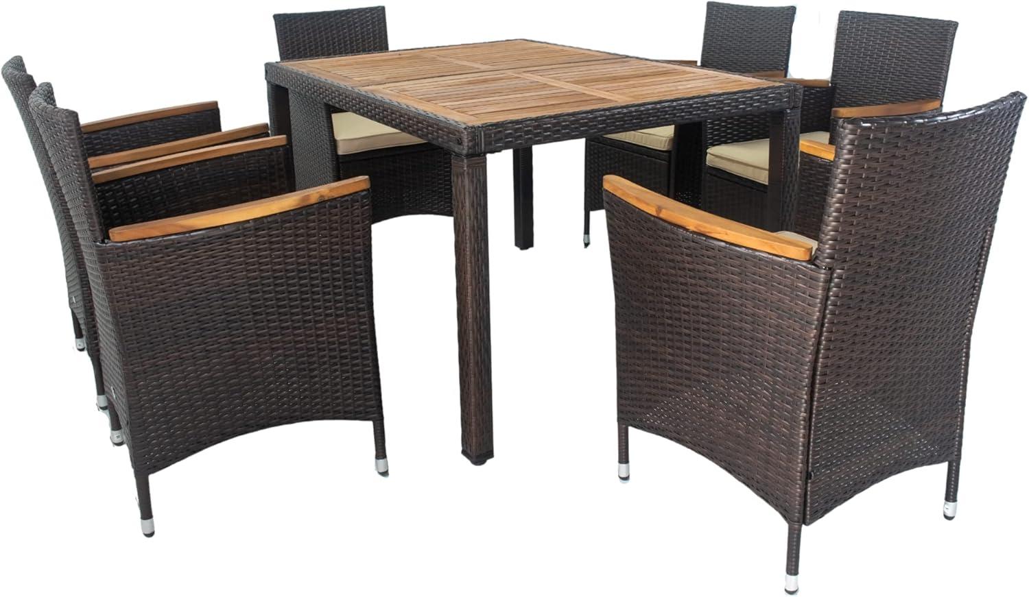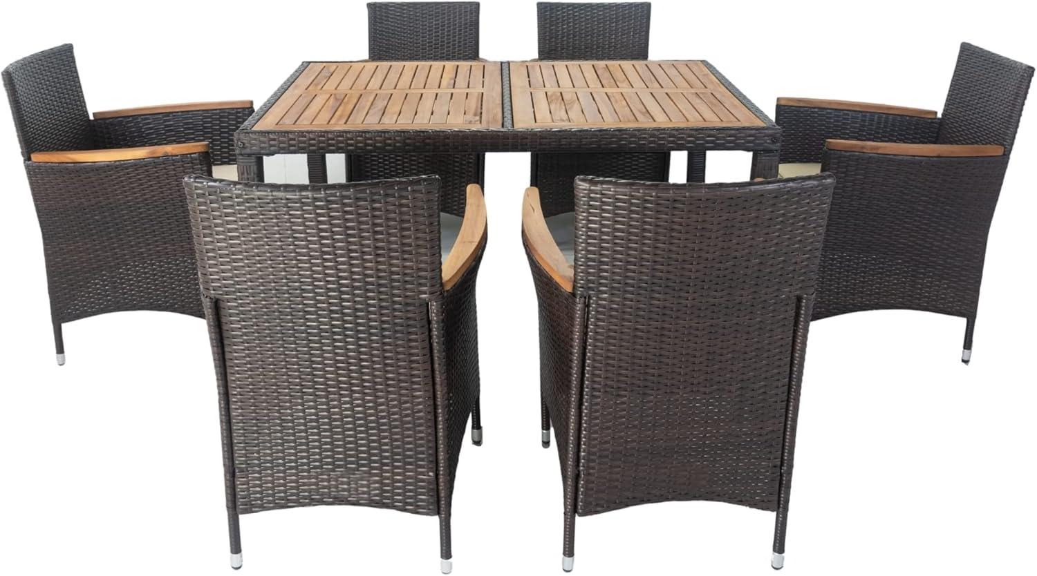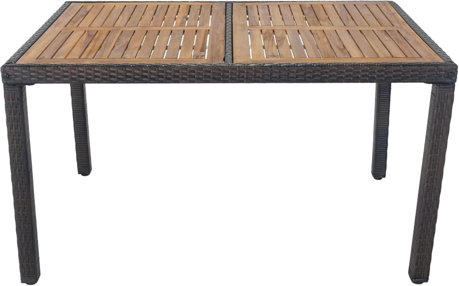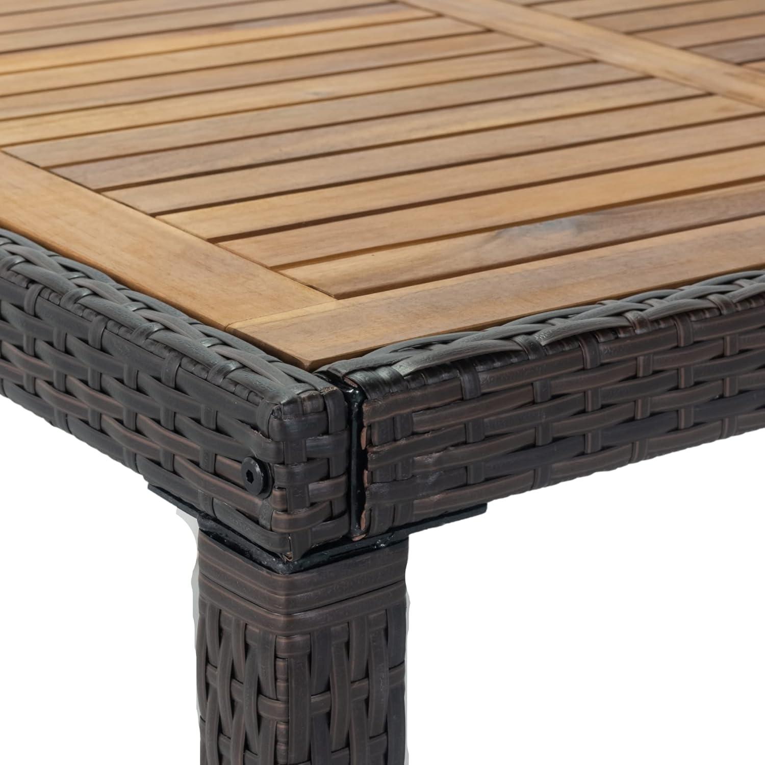 This set is ideal for those who cherish quality time with family and friends in a stylish and comfortable outdoor environment. If you’re someone who enjoys hosting dinners, casual gatherings, or simply relaxing poolside with a favorite beverage, this dining set offers the perfect blend of durability and elegance. The spacious table and ergonomic cushioned chairs ensure everyone has enough room and support for hours of conversation and enjoyment. It’s especially suited for users who appreciate a mix of natural materials – the warm acacia wood top combined with all-weather wicker creates a modern yet cozy atmosphere in any garden, backyard, or patio setting.