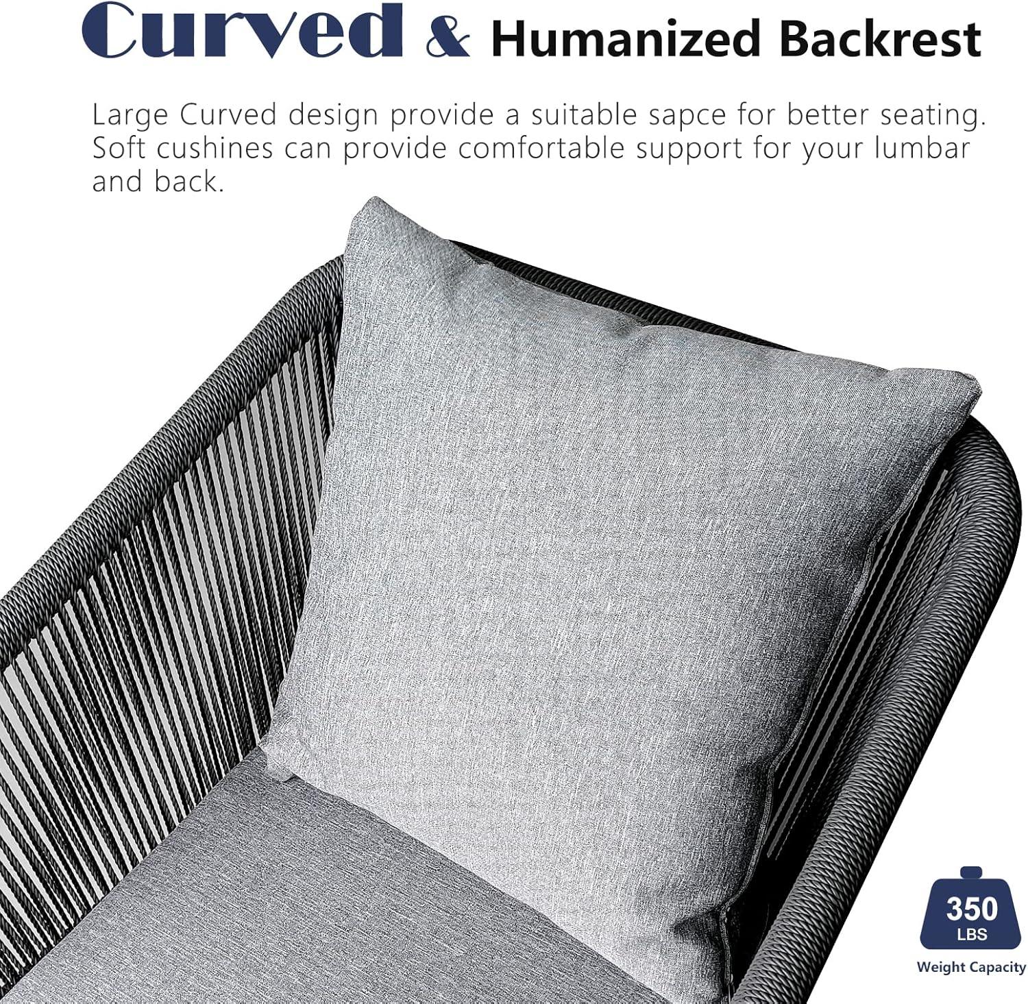 Beyond comfort, the cushions are tailored to complement the modern aesthetic of the furniture, featuring a neutral grey tone that harmonizes perfectly with the wicker and aluminum frame. Their dimensions fit snugly on each chair, ensuring they don’t slip or slide during use. Here’s a quick overview of their key practical features: