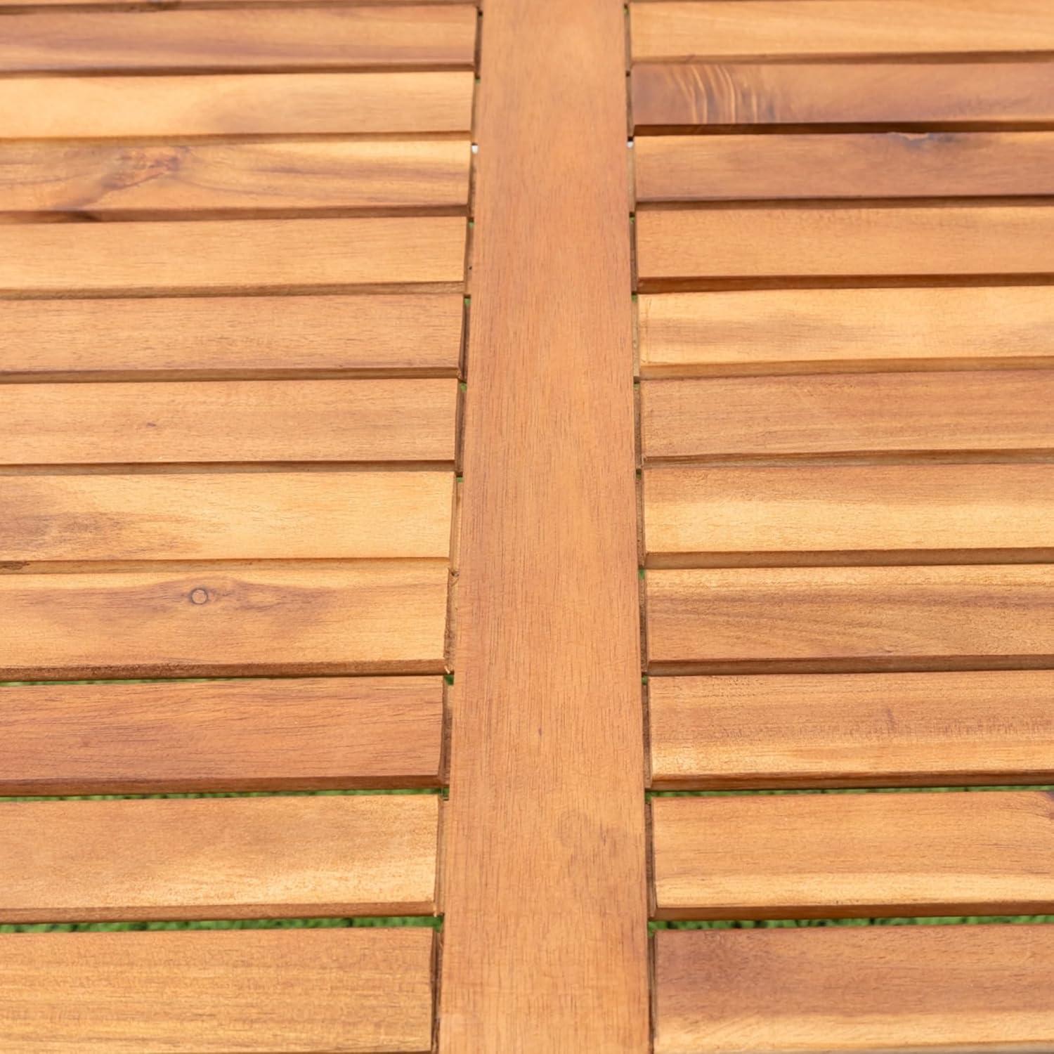 | Sturdy rust-resistant powder-coated steel frame ensures long-lasting durability. | Acacia wood tabletop requires occasional maintenance to preserve its finish. |