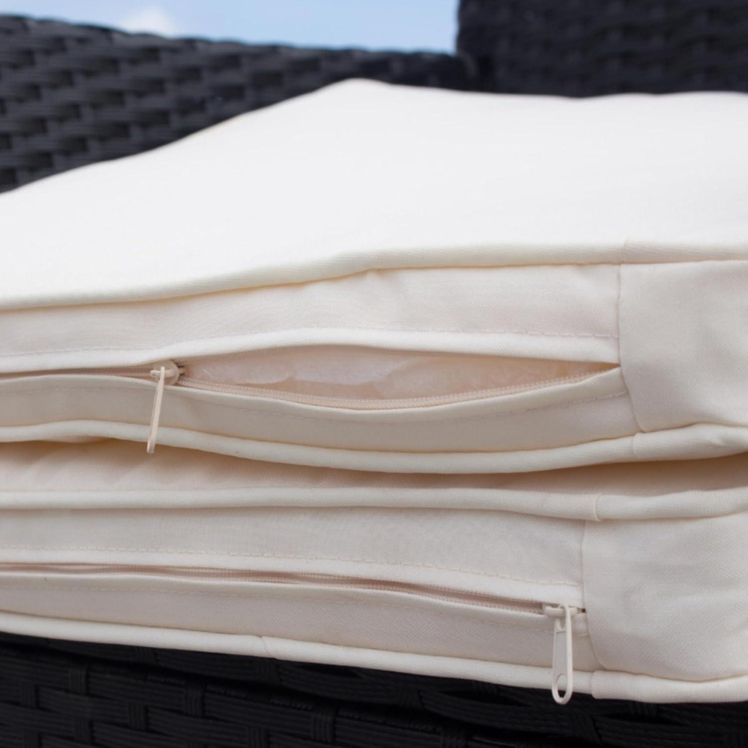 | All-weather woven rattan weaves timeless style with weather resistance. | Cream cushions may need regular cleaning to avoid stains in outdoor environments. |