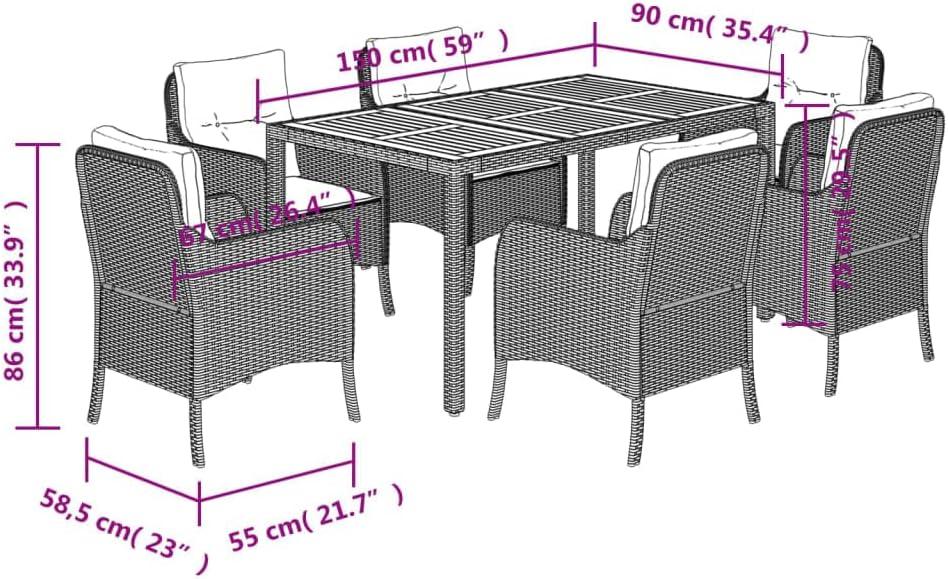 We instantly noticed how the sleek black poly rattan weaves seamlessly with the rich, oiled acacia wood framework, creating a modern yet timeless look that elevates any outdoor space. The set’s rectangular table offers generous surface area-perfect for gatherings-while each chair is thoughtfully designed for ergonomic comfort, allowing us to enjoy long meals or relaxed conversations without discomfort. The cushions add an extra layer of coziness, and their removable, zippered covers make upkeep effortless, ensuring the set stays fresh and inviting season after season.