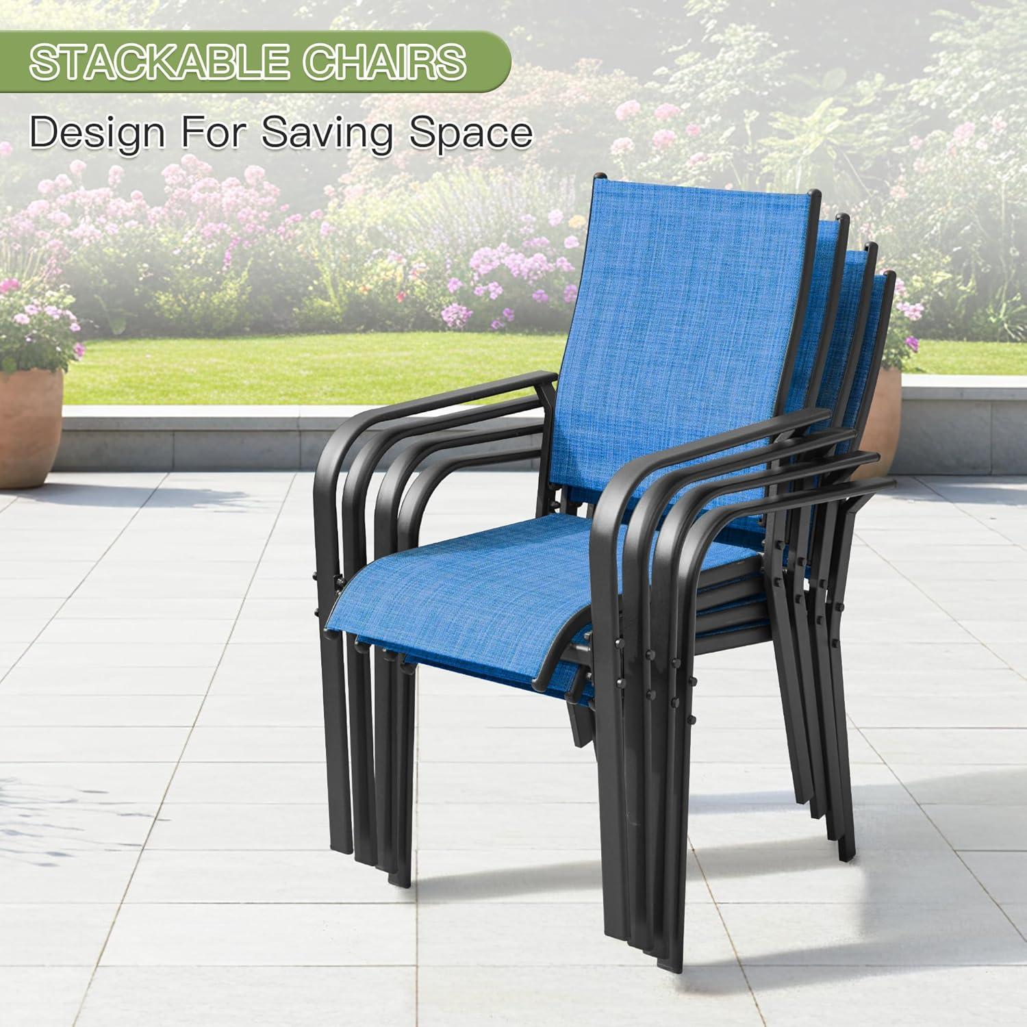 We found the chairs to be exceptionally comfortable, thanks to their ergonomically designed backrest and widened curved metal armrests. The blend of the reinforced metal frame with premium 550GSM Textilene fabric creates a seating experience that supports up to 330 pounds without compromising comfort. The breathable and waterproof nature of the fabric ensures that even during warmer days, sitting remains pleasant without trapping heat or moisture.This thoughtful design truly meets the needs of outdoor living,allowing us to relax for hours whether dining or just enjoying the garden ambiance.
