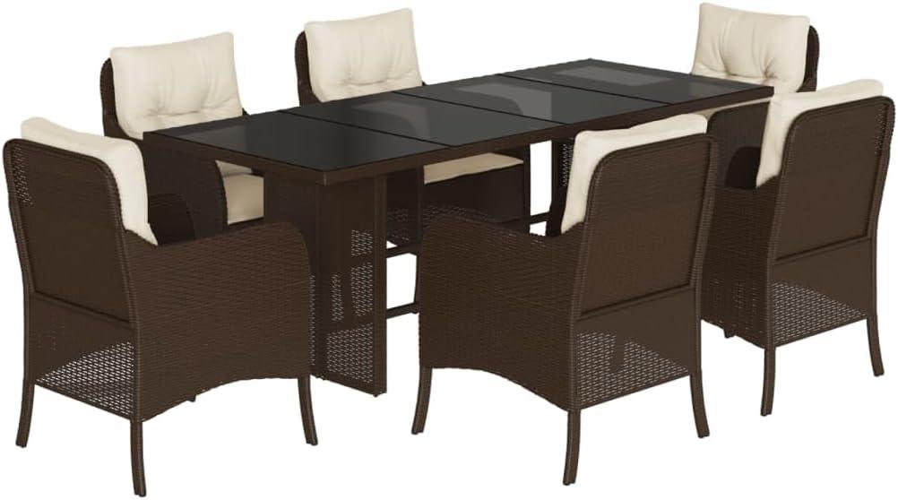We find that this dining ensemble enriches any outdoor area with a refined yet inviting look. The rich brown poly rattan weave provides a warm, natural feel, complimenting green garden spaces or wooden decks beautifully. Its clean, rectangular shape and powder-coated finish offer a contemporary touch without overpowering the setting, allowing your surrounding flora and outdoor decor to shine alongside it. The tempered glass tabletop adds a hint of elegance and reflects sunlight softly, creating a bright and airy atmosphere perfect for daytime gatherings or twilight dinners.