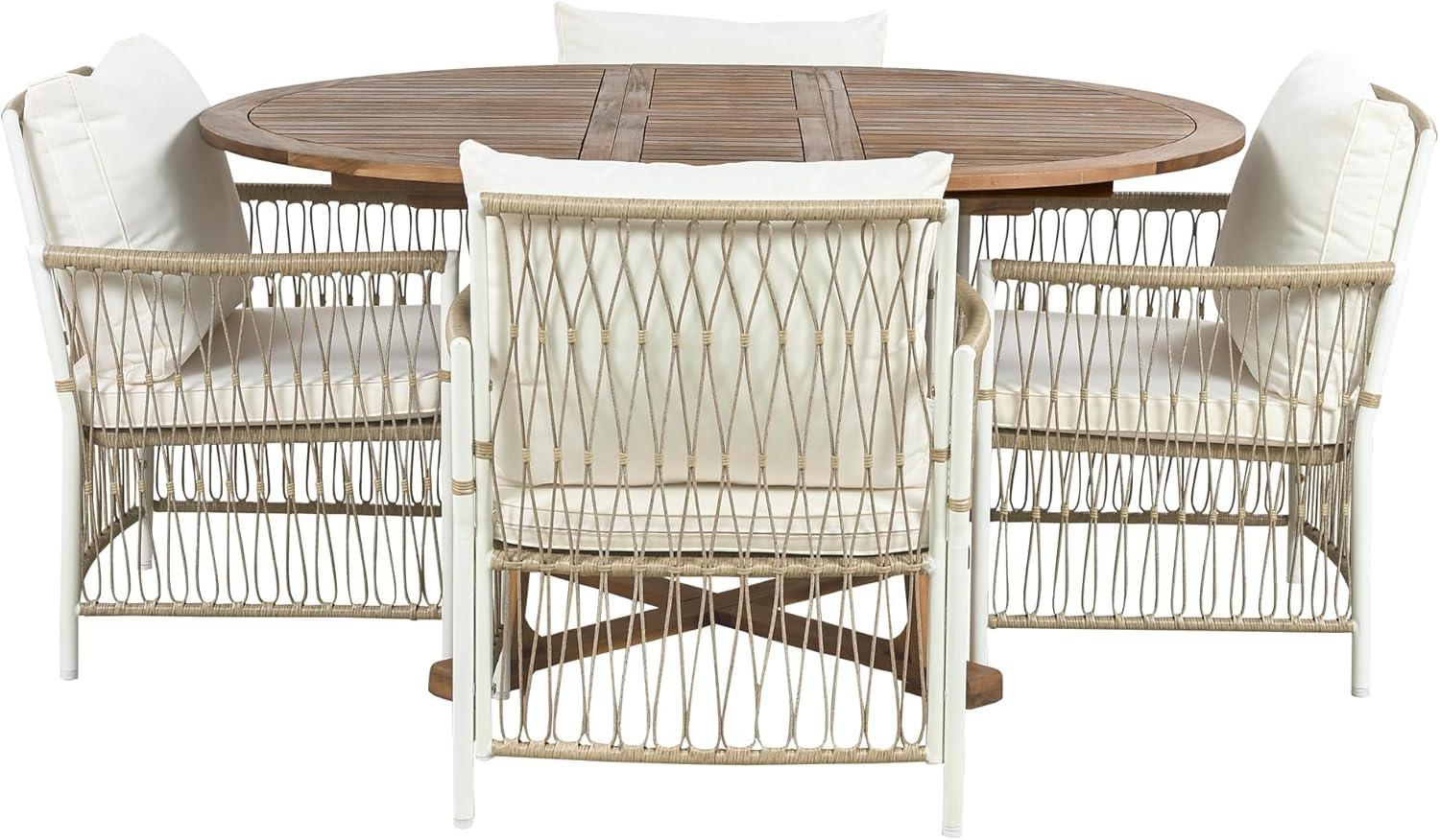We found this dining set to be an notable combination of style, practicality, and comfort. The round acacia wood table easily extends from 48 to 60 inches with a smooth butterfly leaf mechanism, providing extra space whenever we host guests without sacrificing its sleek profile. Its natural wood finish complements the handwoven PE wicker on the chairs, creating an inviting atmosphere whether placed by the poolside, on a balcony, or in the garden. The adjustable foot pads ensure the table and chairs remain stable on uneven surfaces, making the set extremely versatile.