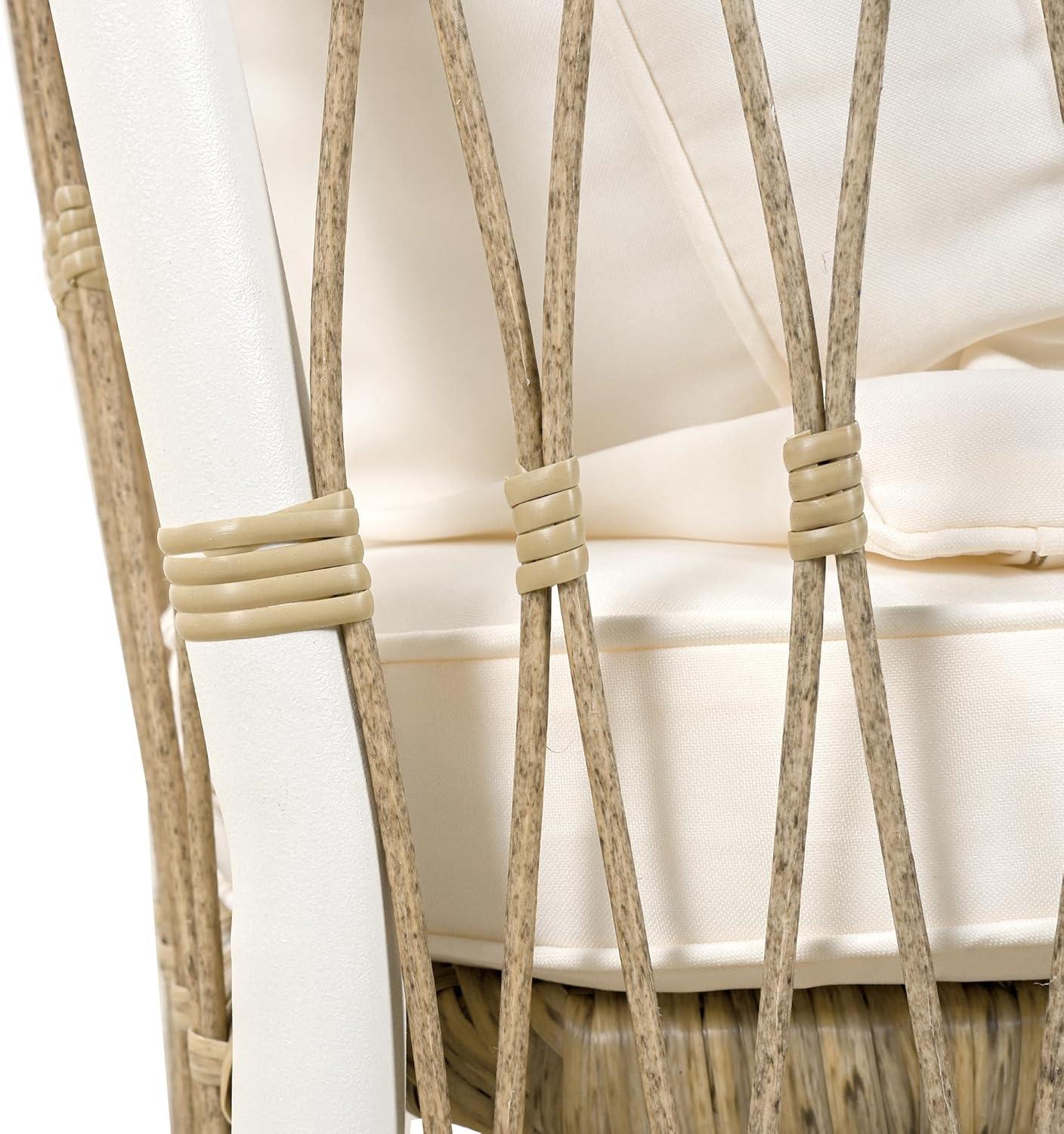 The four rattan armchairs stood out due to their sturdy iron frames and generous weight capacity of 400 lbs each, which gave us confidence in their durability. the wide armrests and removable cushioned seats made long dinners pleasant and relaxing. Assembly was straightforward with all tools included, and the cushions have zipper covers for easy cleaning, which helps maintain the set’s fresh look through changing seasons. We also appreciated the lightweight design of each piece combined with their solid build, striking a perfect balance between portability and robustness.