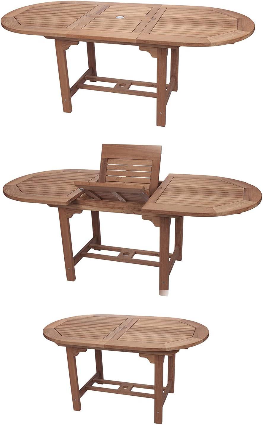 This patio dining set redefines outdoor hosting with its blend of elegant design and robust functionality. Crafted from premium plantation-harvested teak wood, the natural high oil content of the wood ensures remarkable resistance against weather and outdoor elements, promising longevity and an enduring finish. The craftsmanship stands out with kiln-dried wood, precision-machined with mortise and tenon joints, which adds exceptional stability and strength to the entire set. One of the most thoughtful features is the oval expansion table, which easily transforms from 60 inches to 78 inches thanks to its clever butterfly leaf, offering versatile space to accommodate growing gatherings without compromising style.