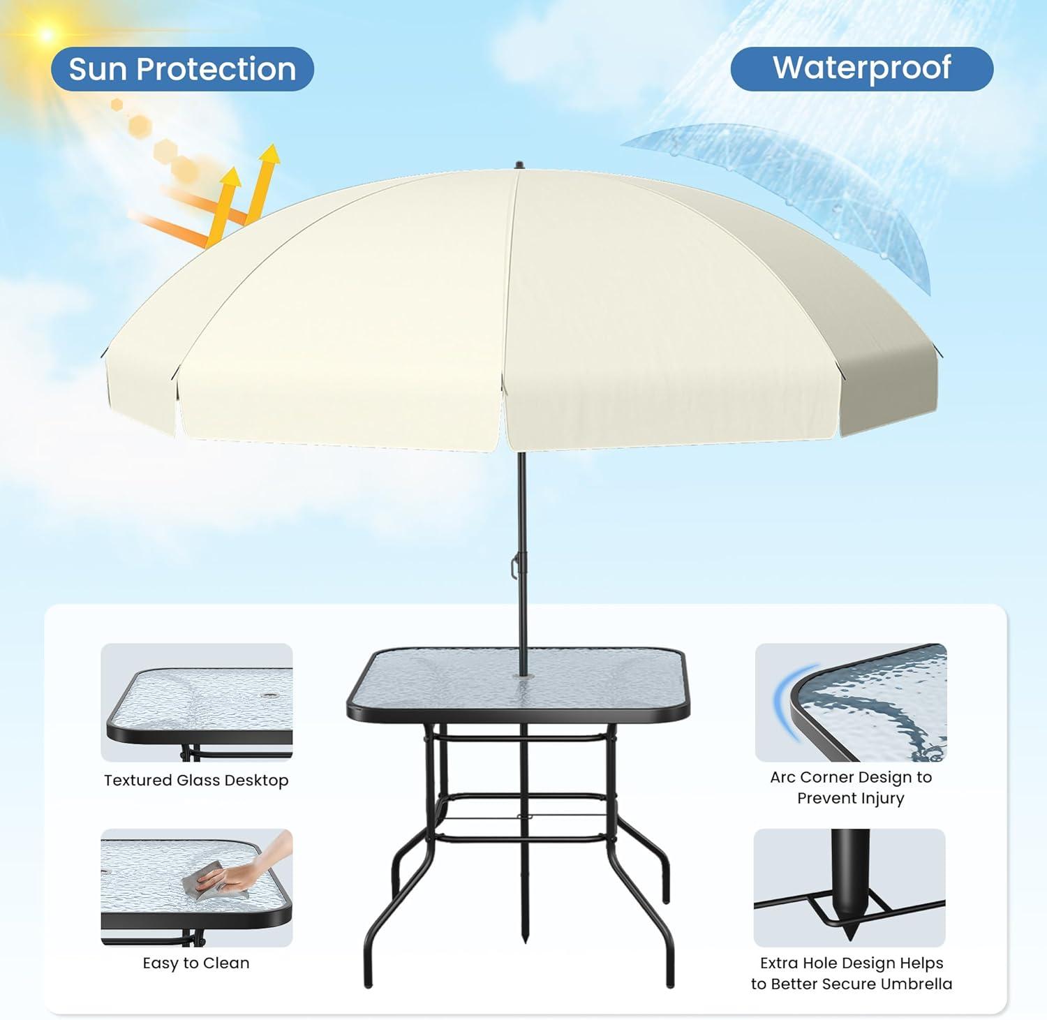 | 5.2 ft Canopy Size | Full coverage for table & chairs |