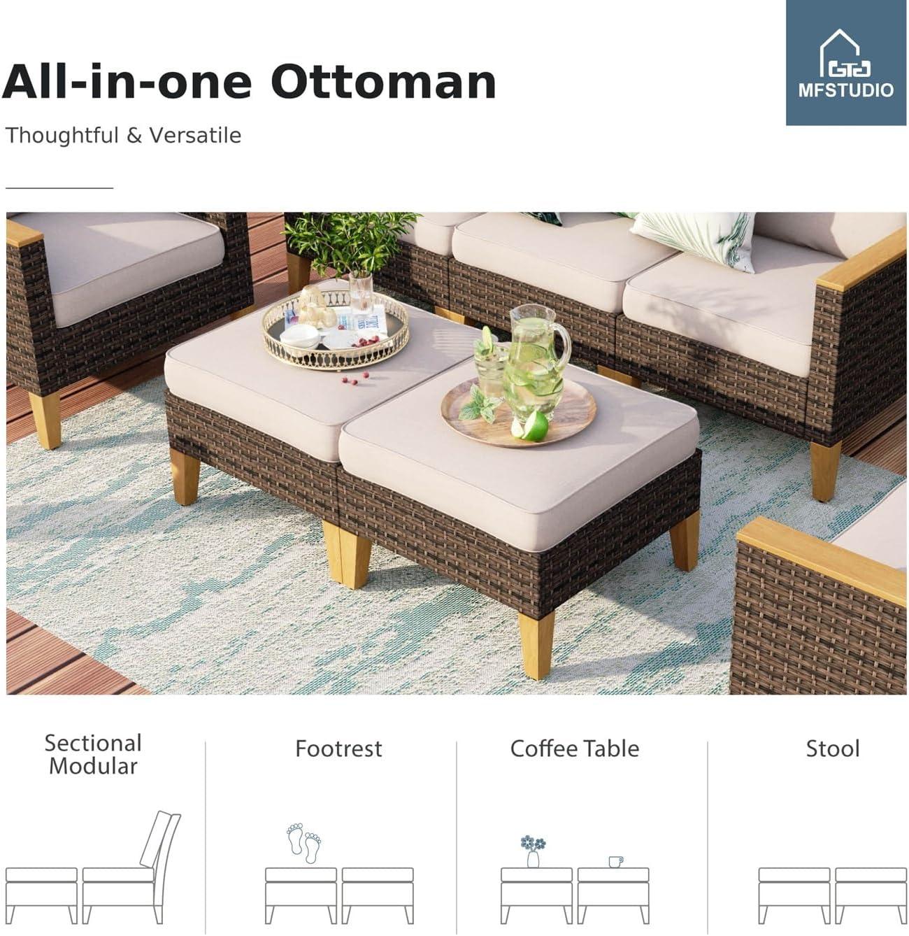 | Flexible Configuration: With 4 curved sofas, an armless chair, and 2 ottomans, you can tailor the layout to fit your patio perfectly. | Storage Space: Ottomans and sectional pieces are sizeable,so adequate outdoor space is essential to avoid crowding. |