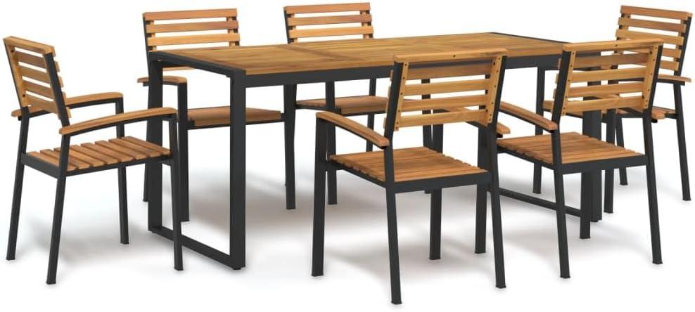 We truly appreciate the thoughtful fusion of solid acacia wood and powder-coated metal in this dining set. The acacia wood, known for its tropical hardwood properties, offers a dense and durable surface that ages gracefully while showcasing a rich, natural grain. The oil finish enhances its resilience against outdoor elements, though we recommend using a waterproof cover to maintain its pristine look over time. The powder-coated metal legs not only add a modern industrial edge but also deliver exceptional sturdiness and stability, ensuring that the entire set remains rock-solid during lively family dinners or casual gatherings alike.