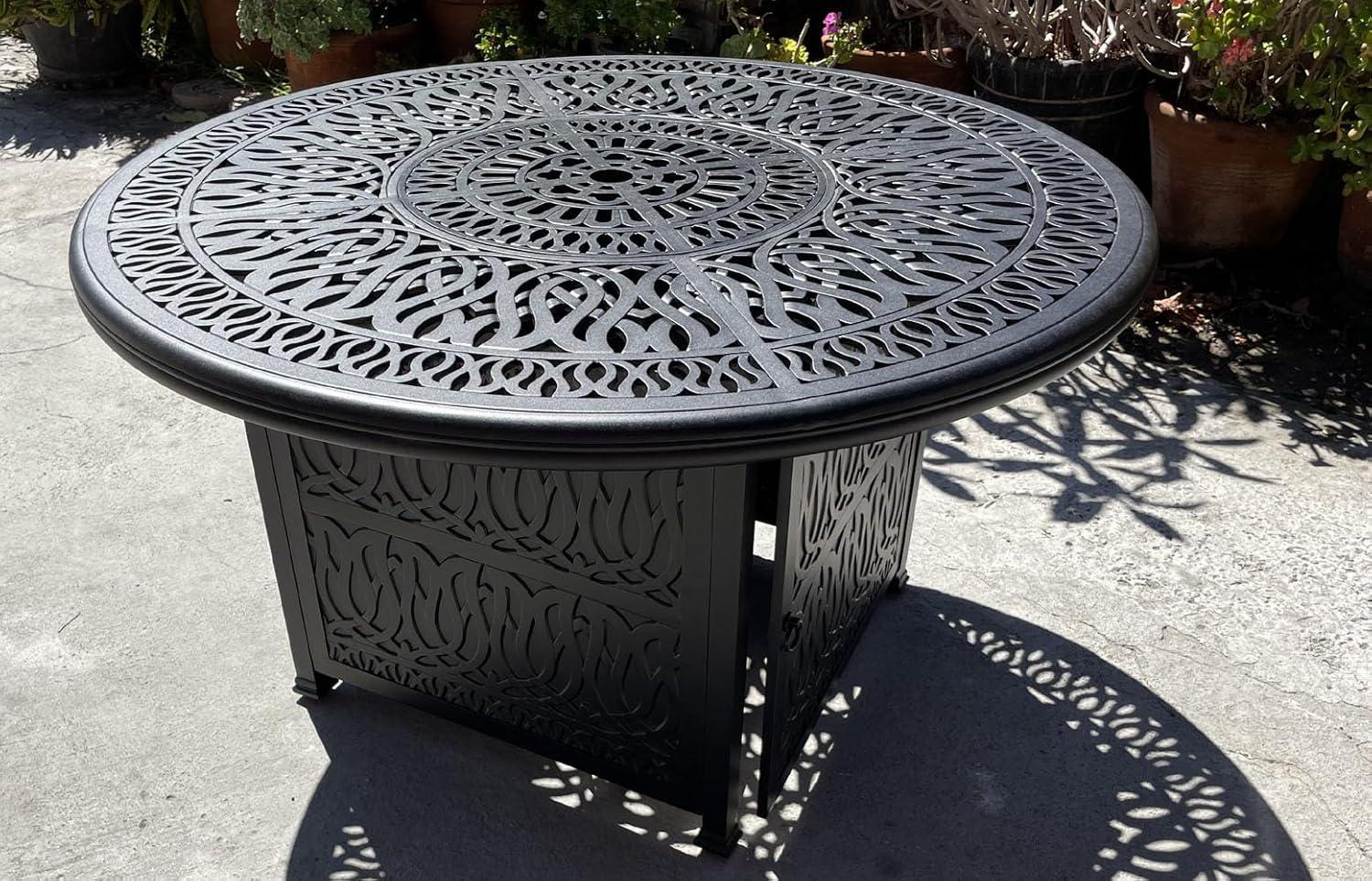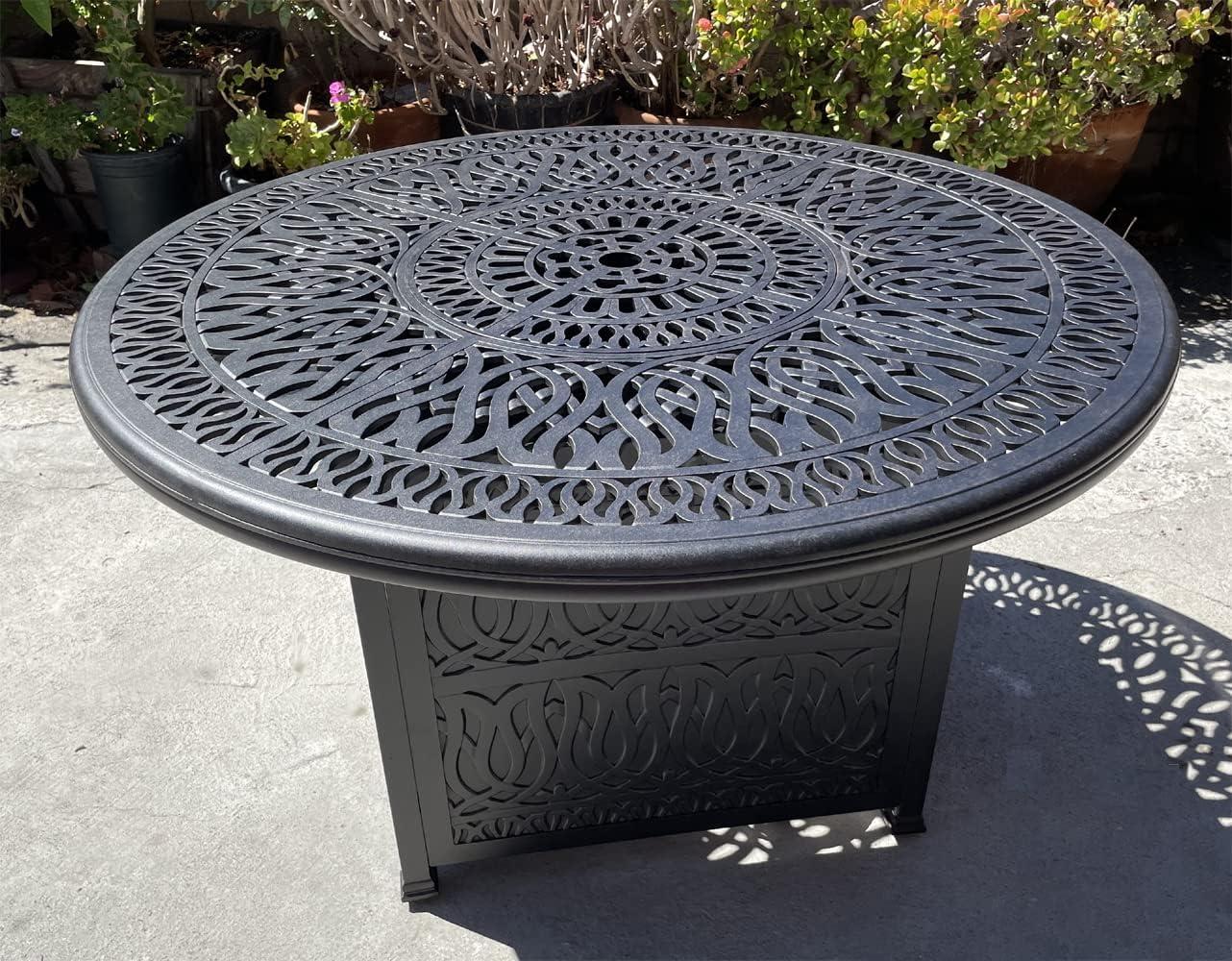 | Generous Size: With a 52″ diameter table, there’s plenty of space to gather around for conversation and dining. | Heating Coverage: The fire pit warms around the table’s center,but those seated at the edges may feel less heat on crisp evenings. |