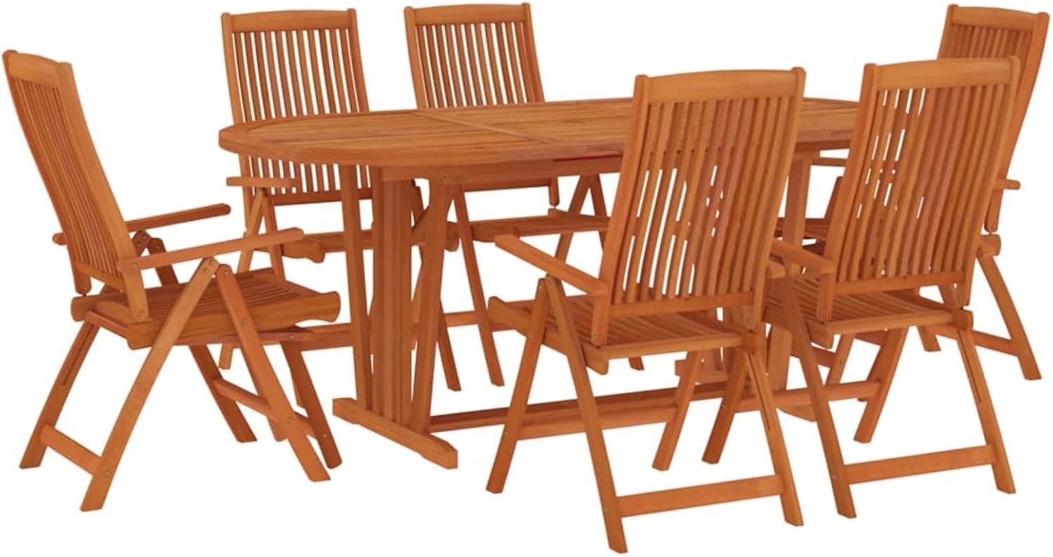 We found this patio dining set to be a perfect fit for both our terrace and balcony, offering a balance of functionality and space-saving design. The solid eucalyptus wood table, paired with six matching chairs, is sturdy yet not bulky, allowing us to comfortably accommodate family and guests without feeling cramped. Its compact footprint helps maximize available outdoor space, making it ideal for smaller areas where every square foot counts. The wood’s natural resistance to the elements means it withstands outdoor use without losing charm, and the smooth surface makes dining and entertaining effortless.