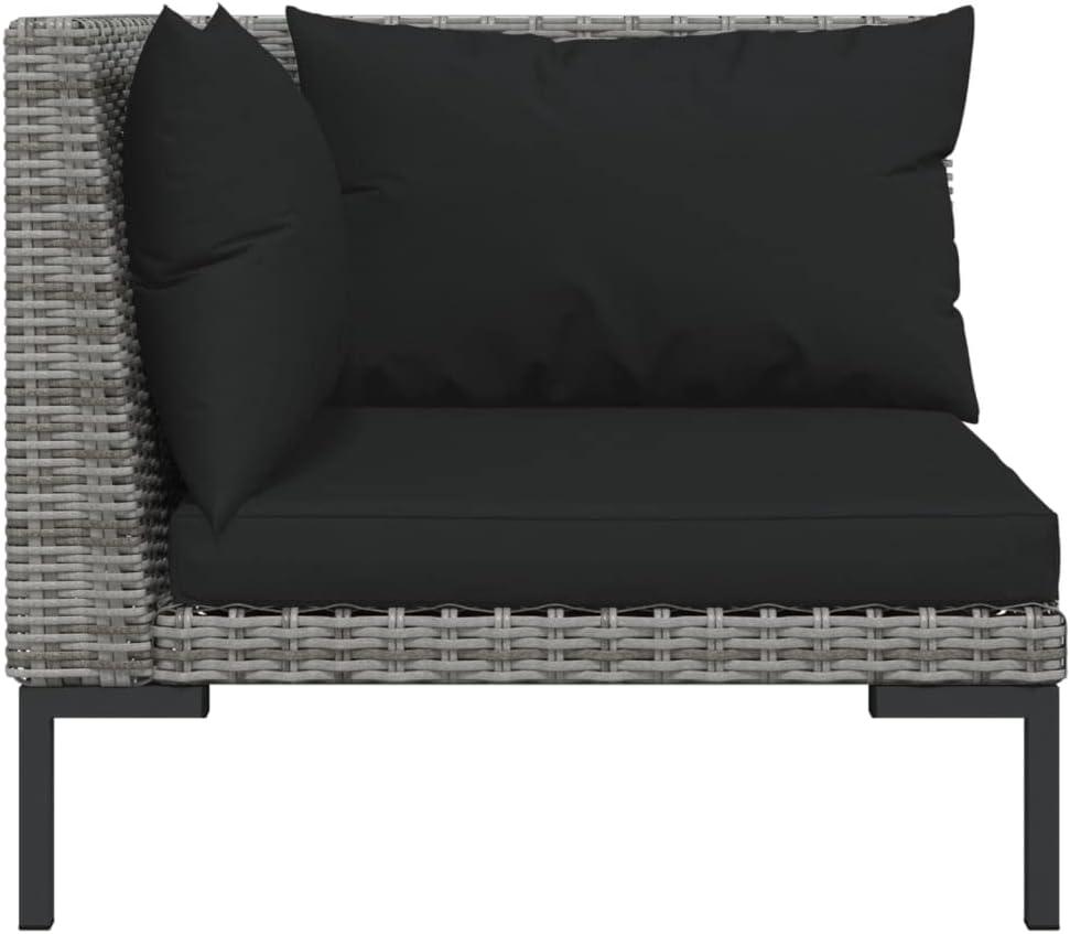 Our outdoor space has transformed beautifully with this lounge set’s sleek, modern design. The dark gray half-round PE rattan weave offers a sophisticated yet natural look that blends seamlessly with greenery and decor alike. We appreciate how the powder-coated steel frame adds subtle industrial flair without sacrificing elegance or durability. The colour contrast between the dark rattan and black cushions enhances the visual appeal, creating a cozy but stylish atmosphere perfect for relaxing or entertaining. Lightweight yet significant in presence, the entire set invites us to linger comfortably under the open sky.