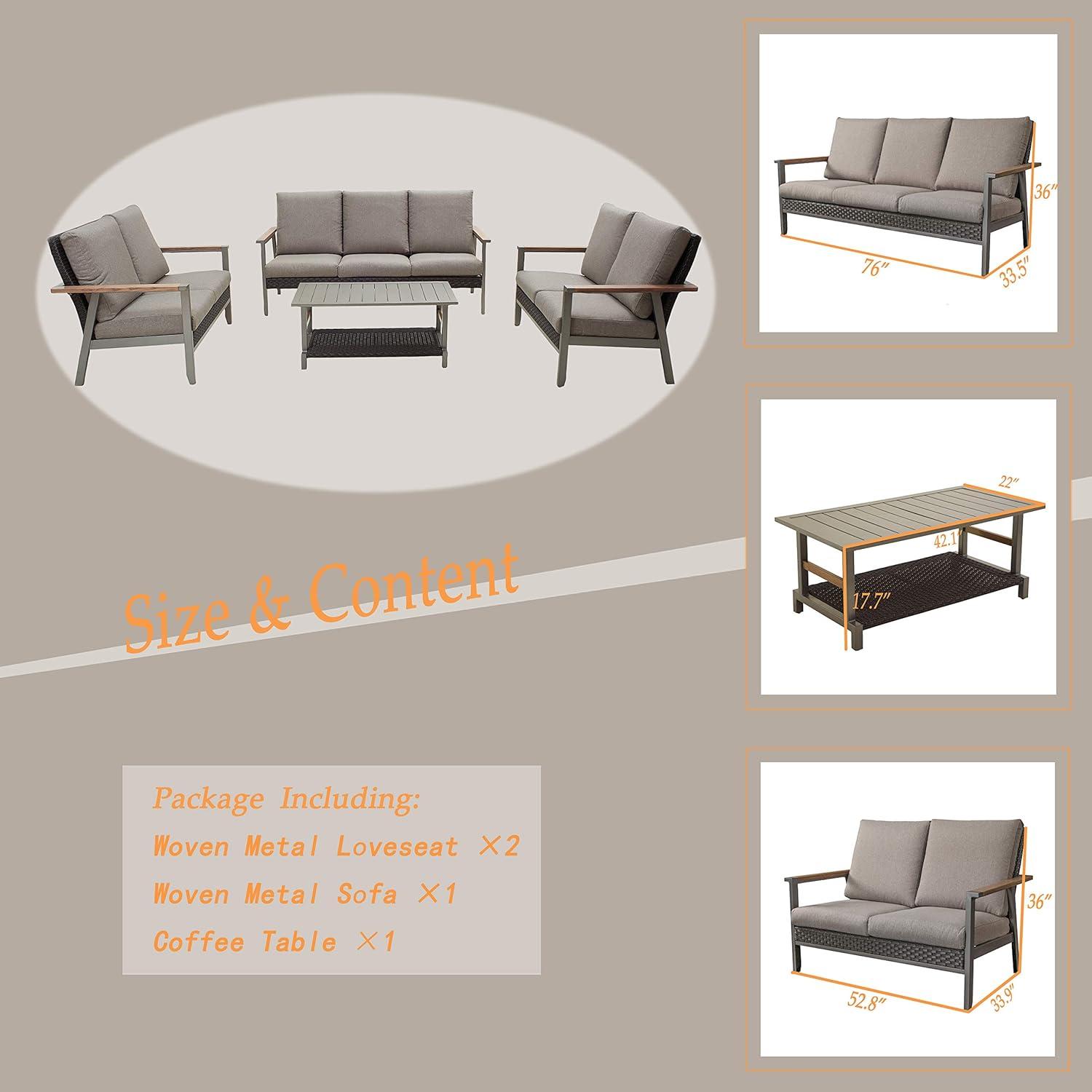 The coffee table in this set​ impresses ⁢with a sleek, ​modern design that complements the entire outdoor​ ensemble beautifully. Its woven ⁢metal frame, paired with a sturdy steel base, ensures durability​ and resistance‌ to weather elements-a‍ must for any terrace or backyard setup. One standout feature is the cleverly engineered tabletop with gap spacing, which prevents liquid from pooling⁢ on the surface, reducing residue and making cleanup hassle-free after refreshing drinks or snacks.