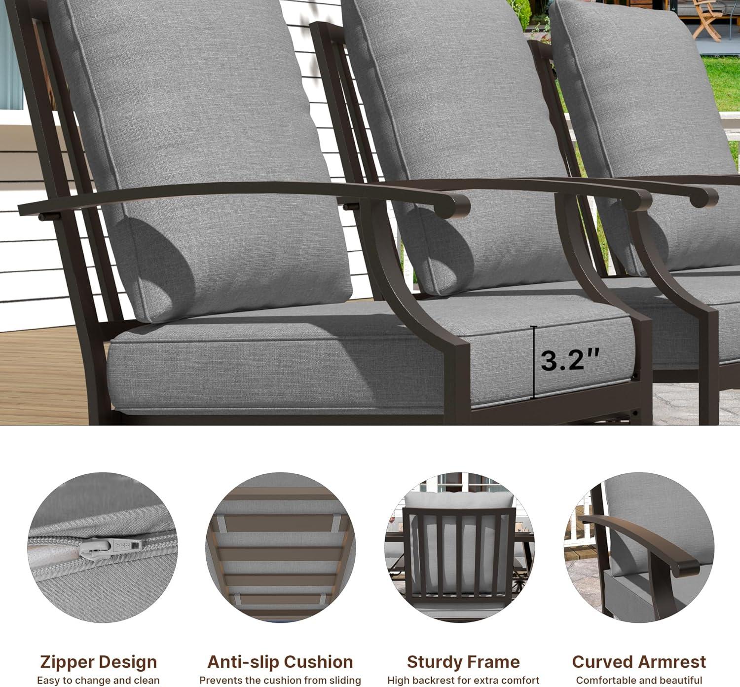 | Comfort-Driven Design: Curved armrests and backrests paired with 3.2-inch thick cushions ensure prolonged comfort that invites guests to linger. | Sharp Edges: Assembly and use require caution around some sharp metal parts which could be a concern for families with young children. |