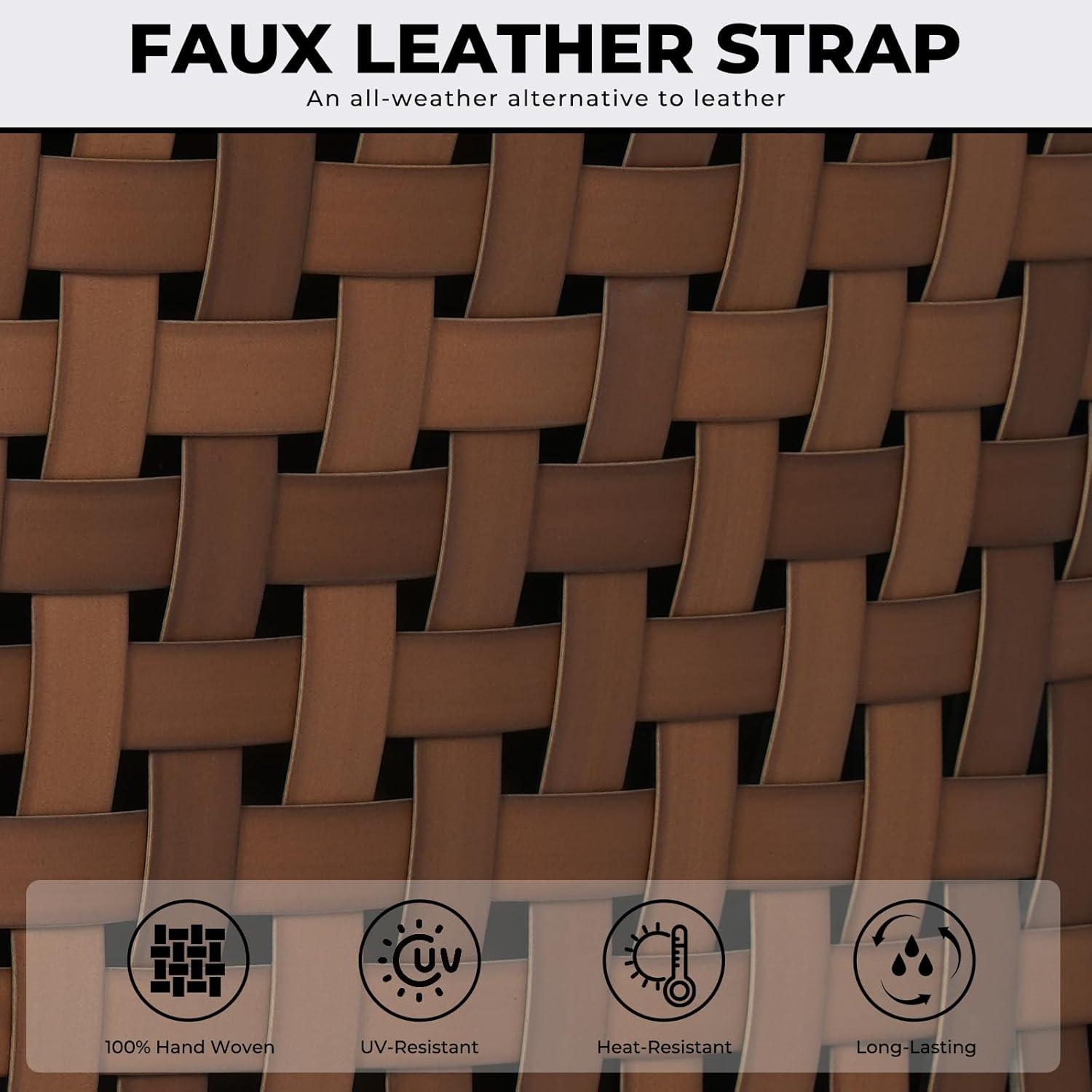 Functionality-wise, the leather-look wicker material is a standout feature. Crafted from handwoven wide strap faux leather, it delivers the rich appeal of genuine leather but with extraordinary weather resistance-rated for 2000 UV hours and highly resistant to sun, rain, and temperature swings.this means the chairs maintain their elegant appearance year-round with minimal upkeep. The powder-coated steel frame also adds durability and rust protection, ensuring stability and longevity as part of our outdoor setup.