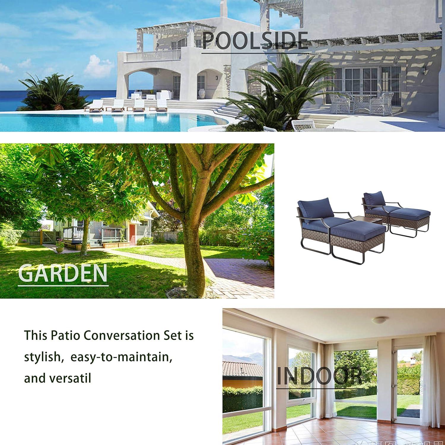 • COMFORTABLE & STYLISH DESIGN: This patio set has thick, high-density rebound sponge cushions for cozy seating. Its simple, stylish look suits patios, balconies, poolside, or gardens.