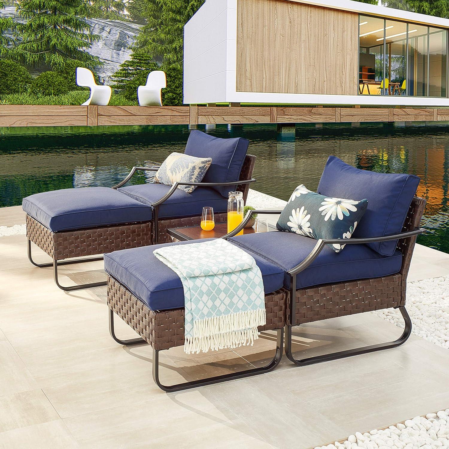 Settling into this⁢ outdoor⁢ set immediately feels inviting thanks ‍to its thoughtfully designed cushions. The blue cushions strike the perfect balance between softness and support, making lounging a true pleasure.Each chair comes with plush ⁤padding ​that resists fading and sun damage, so it stays vibrant and ⁣pleasant through changing‍ seasons.​ The ergonomic shape combined with the ottomans lets us stretch out ‌and unwind fully, transforming any porch or patio into a cozy retreat.