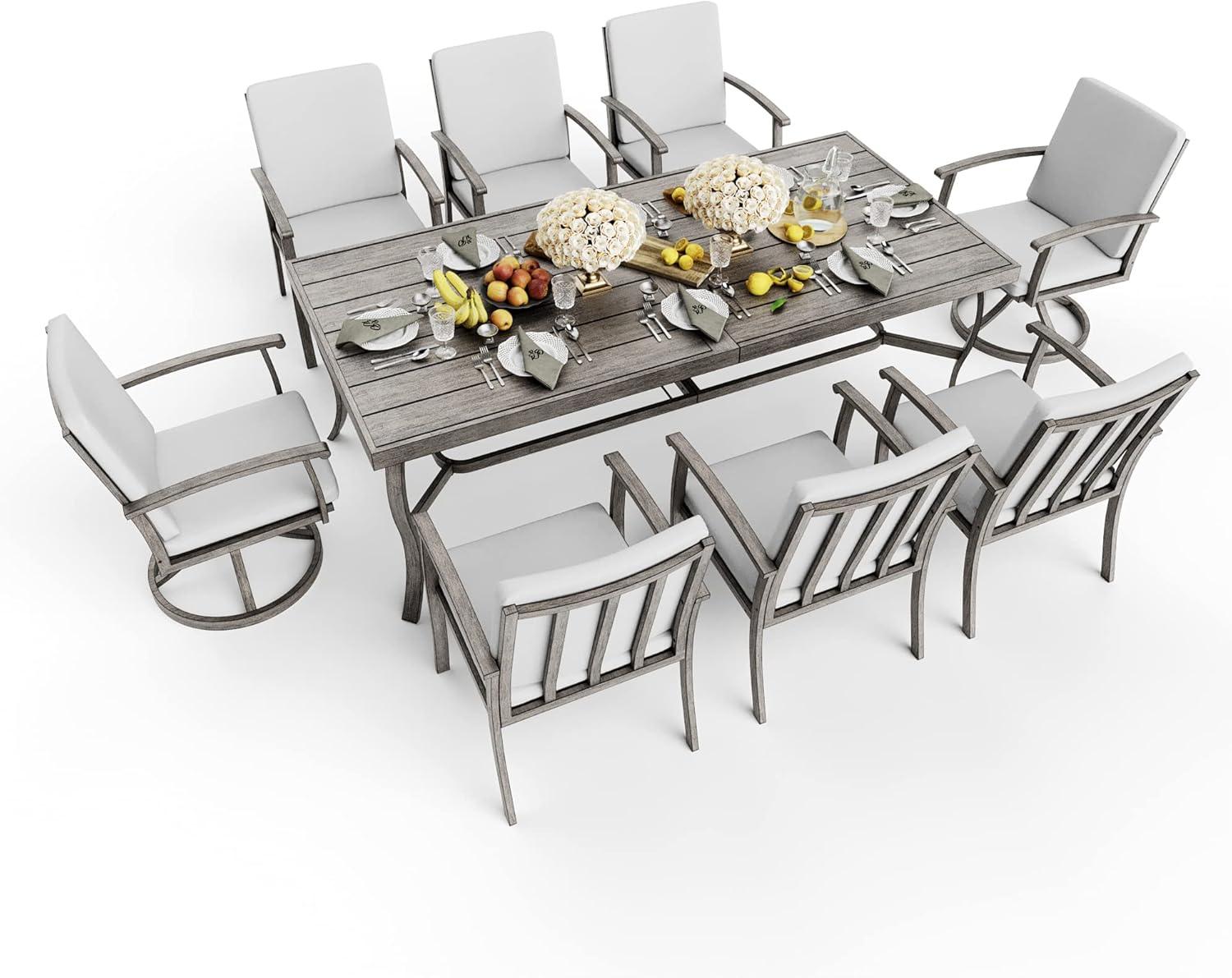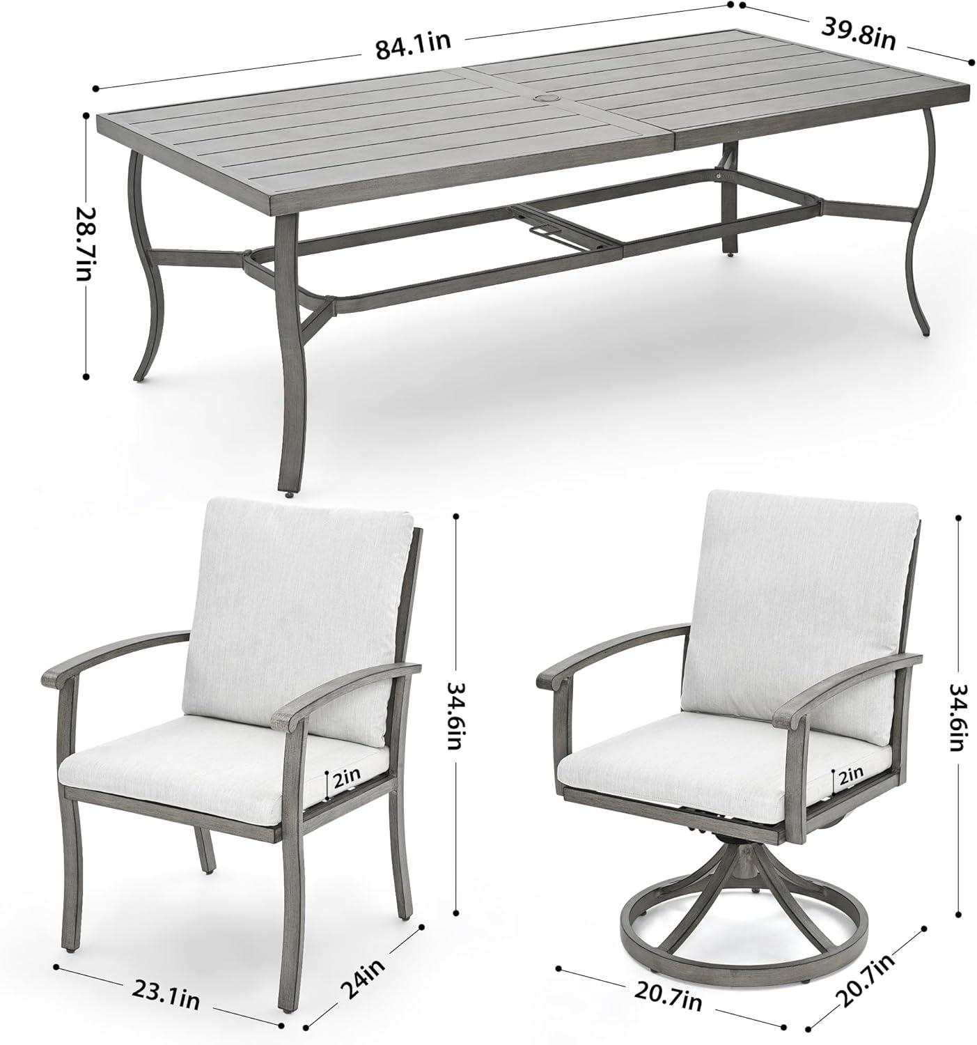 • 【7-Piece Dining Chair Set】This patio dining set contains 1 extended dining table and 6 ergonomic dining chairs. This modern outdoor dining table set features aesthetic appeal that seamlessly blends with various outdoor settings, adding charm and elegance to your patio or garden, which is perfect for your family events.