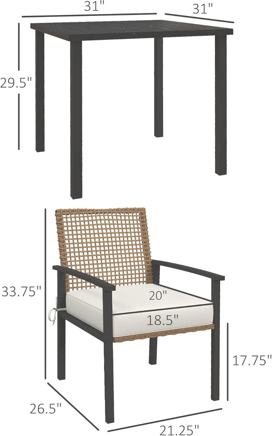 We appreciate the thoughtful craftsmanship that went into this outdoor dining set, blending classic wicker aesthetics with modern durability. The hand-woven PE rattan gives it an inviting, natural look while improving resistance to the unpredictable outdoor elements. Each chair features soft padded cushions,with breathable woven backrests and supportive armrests that add to the comfort during long alfresco meals or relaxing garden conversations. The square metal table top, designed with a wood grain finish, not only resists weather but also wipes clean effortlessly, making maintenance a breeze.