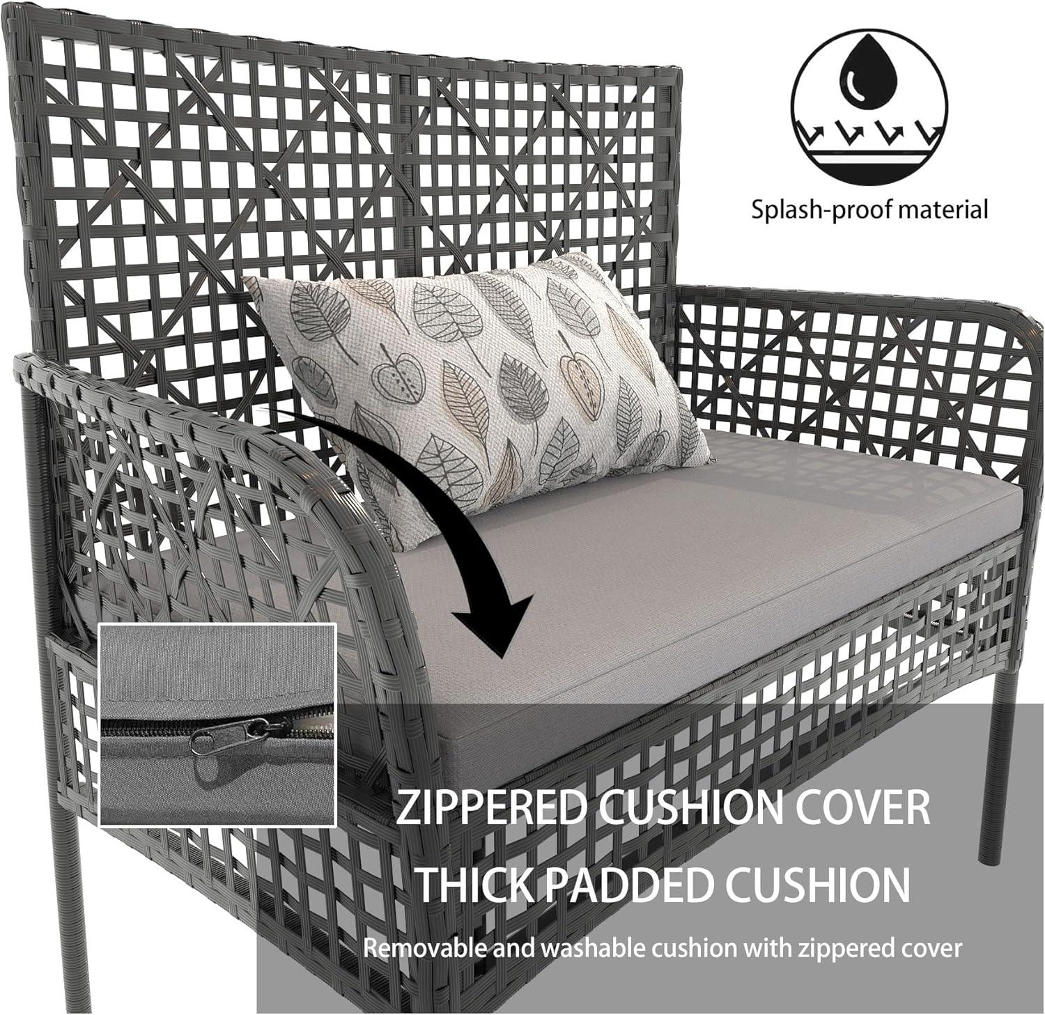 - COMFORTABLE & STYLISH DESIGN: This patio set has thick, high-density rebound sponge cushions for cozy seating. Its simple, stylish look suits patios, balconies, poolside, or gardens.