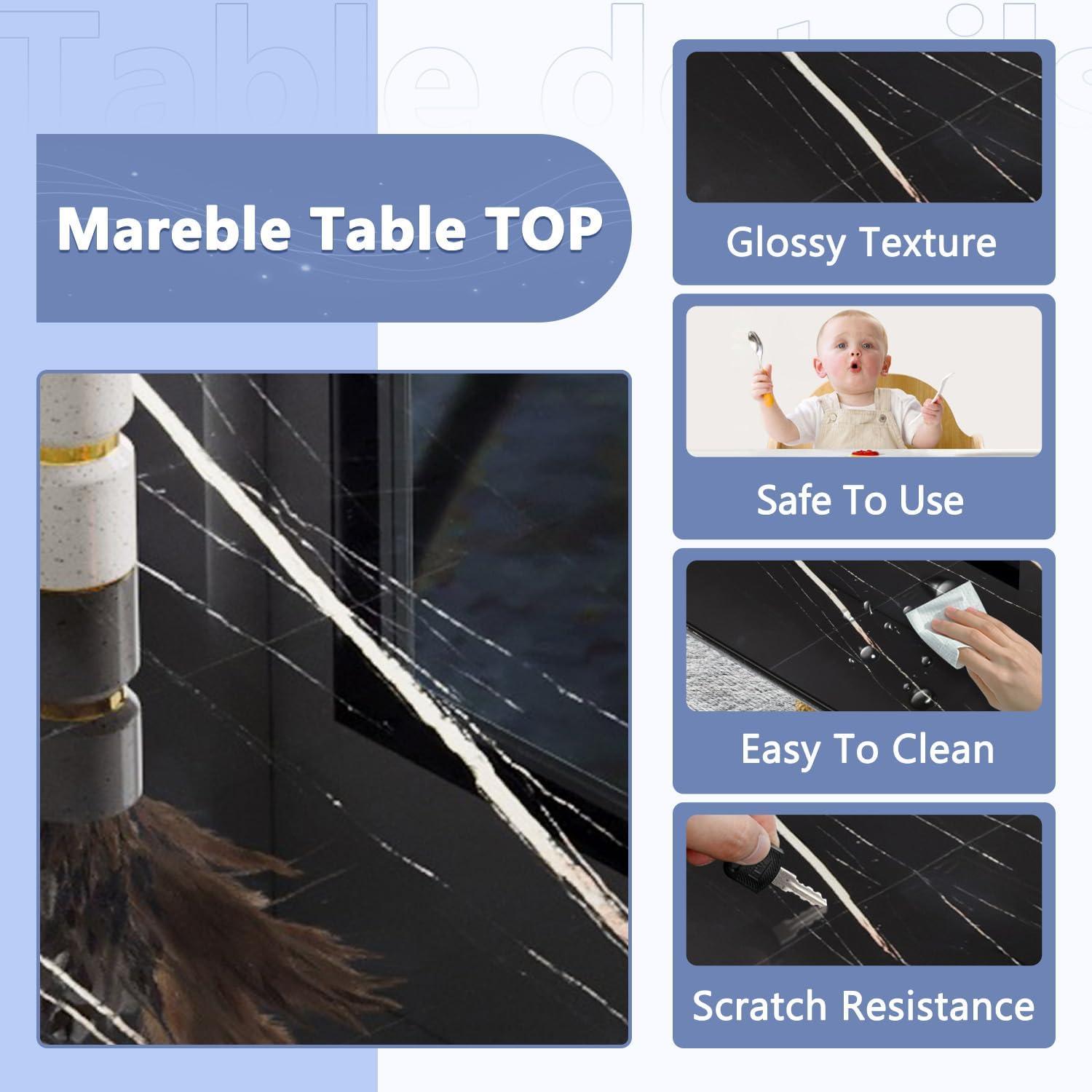 | Material Highlights | Faux marble tabletop & T-shaped stainless steel legs |