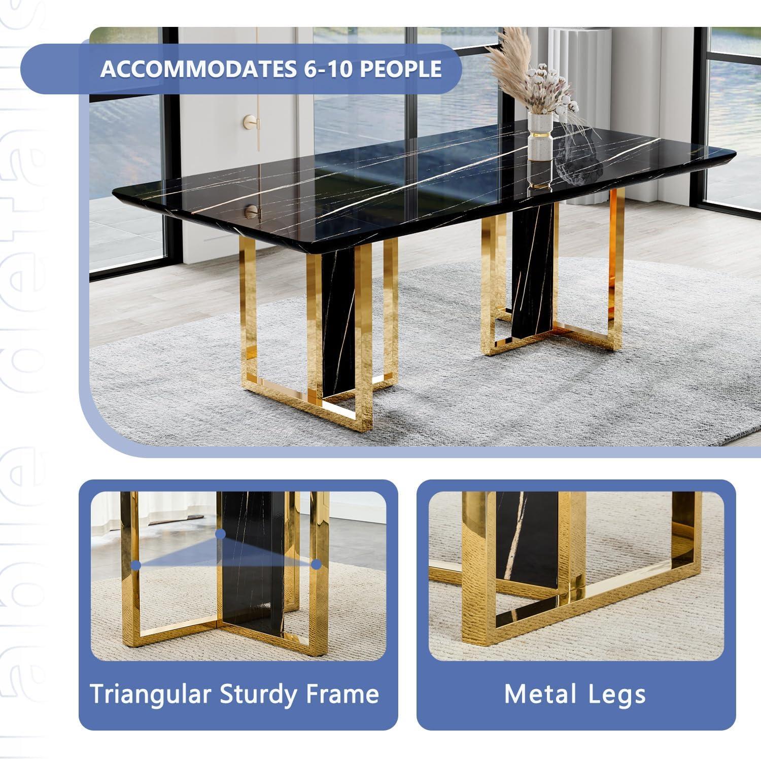 In terms of versatility, this dining set truly shines in a busy household. The roomy 67″ glossy faux marble tabletop provides ample space not only for family meals but also for homework sessions, board games, and casual gatherings. The black rectangular design blends seamlessly with various décor styles, making it adaptable as your tastes or room themes evolve. Plus, the ingeniously crafted chairs combine comfort and style, encouraging everyone to linger longer without discomfort during those extended family dinners or lively conversations.