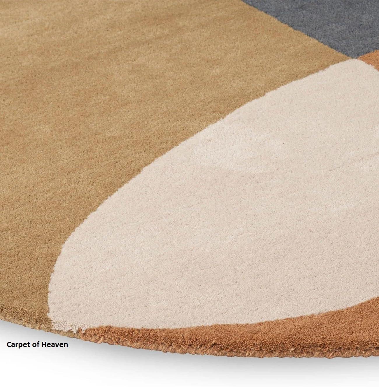 In everyday use the carpet often behaves like a lively, lived-in layer rather than an inert floor covering. Walkways develop a soft sheen where the pile is trod most, and over the first few weeks small tufts may loosen before the surface settles; vacuum strokes and the habit of smoothing the edges become part of ordinary upkeep. Underfoot it feels warm and yielding, compressing slightly beneath repeated pressure and recovering unevenly in places where furniture legs sit for long stretches. Light falling across the irregular outline brings out shifts in tone as the pile lies different ways,so the pattern reads a little different depending on the angle of view and movement through the room.