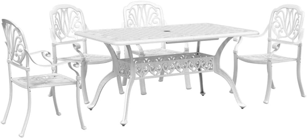 Light catches the white finish and for a moment the table reads like a luminous, steady plane across yoru patio. Up close the cast-aluminum feels cool ‍and ⁢slightly ⁣textured ⁤under ⁣your ⁤palm, and the⁣ chairs — thier backs taller than you expected — give a ⁣firm, hollow sound when you settle into them. You notice how the set’s visual weight ​balances the corner of the‍ deck without looking bulky; the umbrella hole breaks‍ the tabletop in a⁣ way ⁤that ⁤already makes sense ‍for afternoon light. On ⁤delivery the MiraLiving Elegant and⁢ Sturdy 5‑Piece Patio Dining Set⁤ looked almost⁤ clinical in photos, but in your garden ⁤the finish softens against the‍ plants and the ‌armrests fit easily under your forearms, inviting a pause ​rather than‍ a ⁣full ⁣assessment.