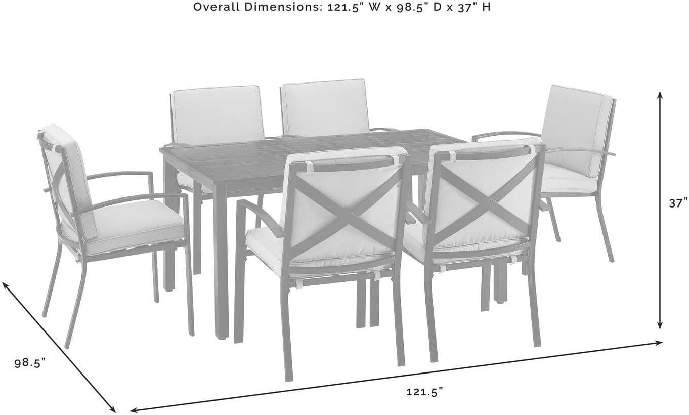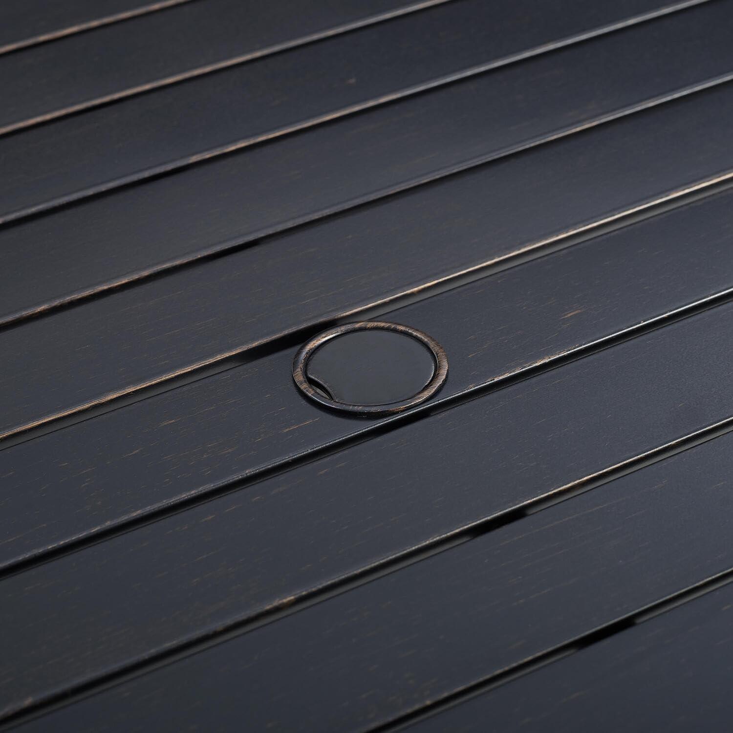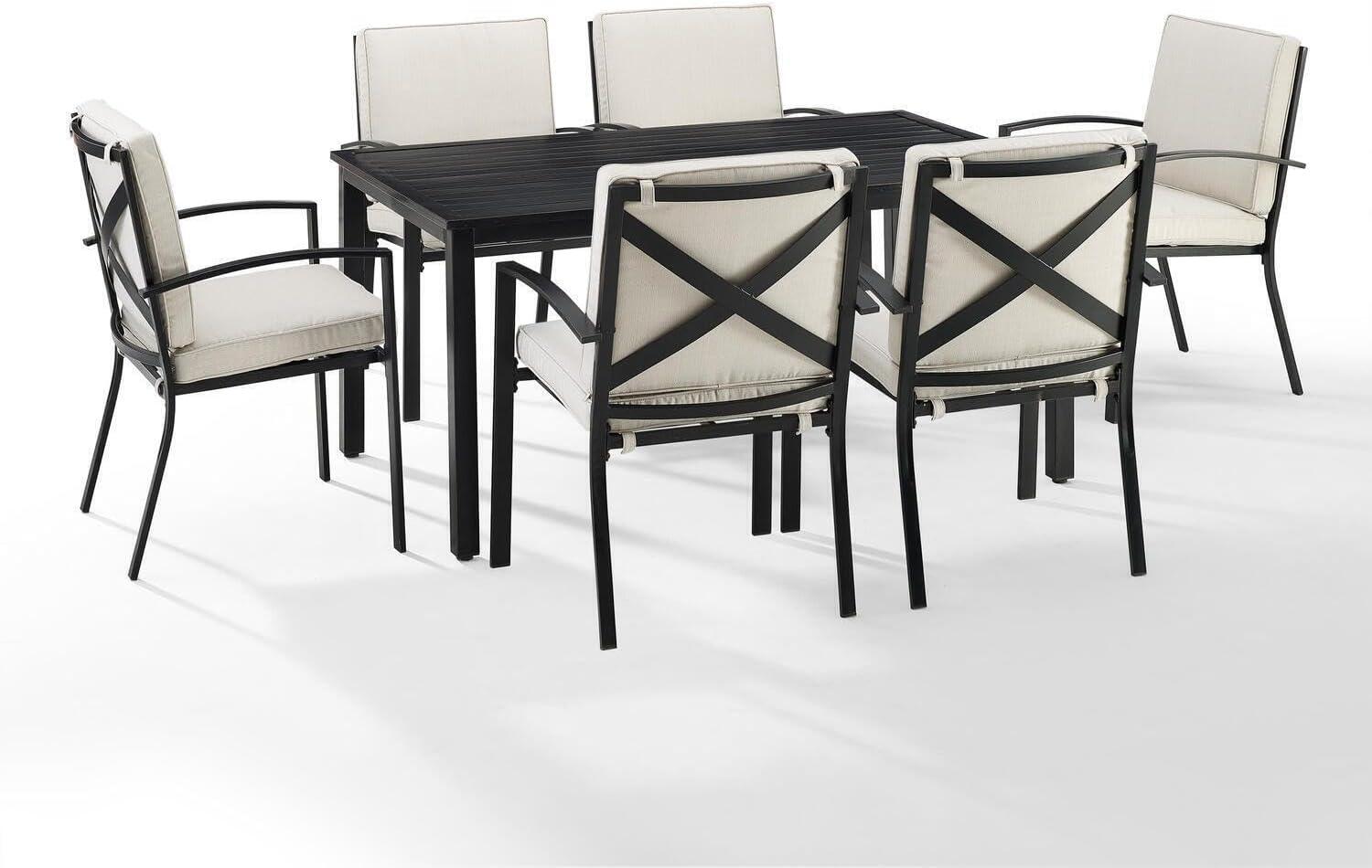 Unwrapping the HomeStock Outdoor Dining Set 7 Piece Metal Table & Chairs – Oiled Bronze, we found ourselves smoothing a hand across the slatted tabletop before we even set the plates down. The oiled-bronze set reads warmer than the phrase suggests — the metal is cool to the touch but the finish picks up late-afternoon light like a soft patina. Chairs slide under the table with a satisfying weight; the X-back silhouettes keep the ensemble feeling airy rather than boxy. Cushions give a modest, textured welcome under our palms, and the slatted top throws narrow bands of shadow that change the whole mood as the sun shifts.