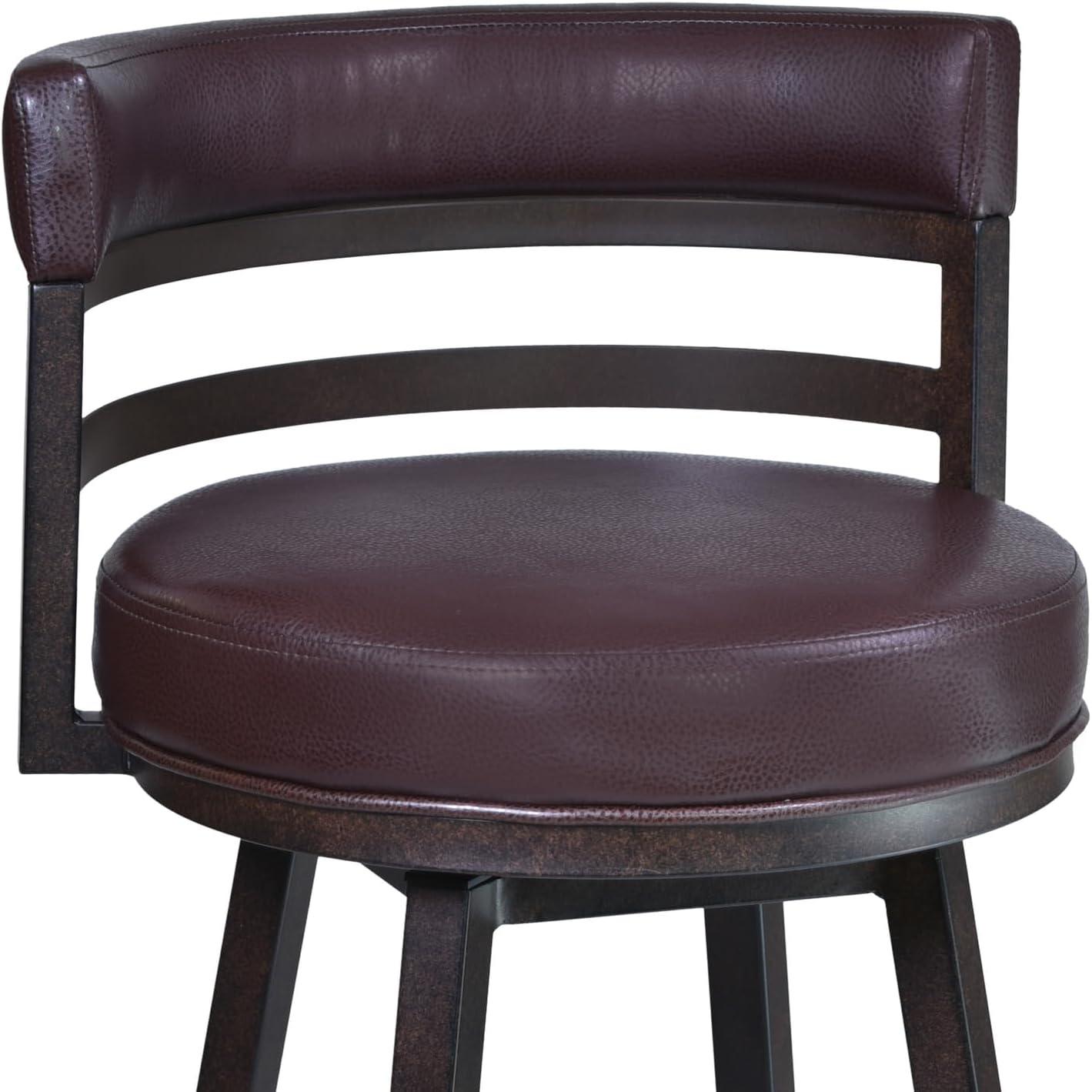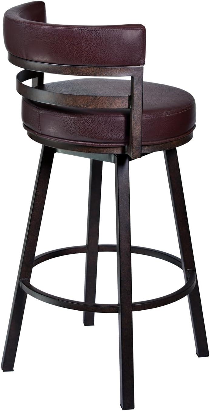 Light skims off the Auburn-tinted finish and the frist thing you notice is the cool, slightly textured metal beneath your palm. The HomeStock Swivel Barstool 30 Inch — listed as the Modern Bar Chair with Footrest in Auburn Bay finish — settles at the counter with a modest, grounded presence: not flashy, but visually weighty enough to anchor the island. From across the room its slim legs make the seat look almost suspended; up close the modest padding and the low back read as practical, everyday comfort. it turns smoothly when you nudge it, the footrest sitting at a comfortable, reassuring angle underfoot.