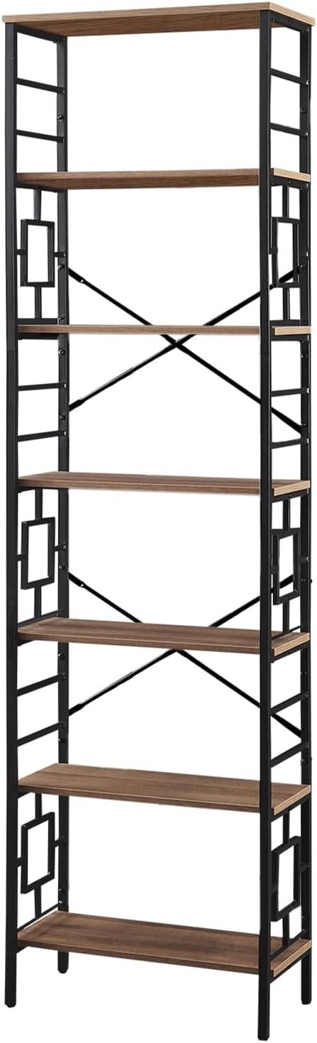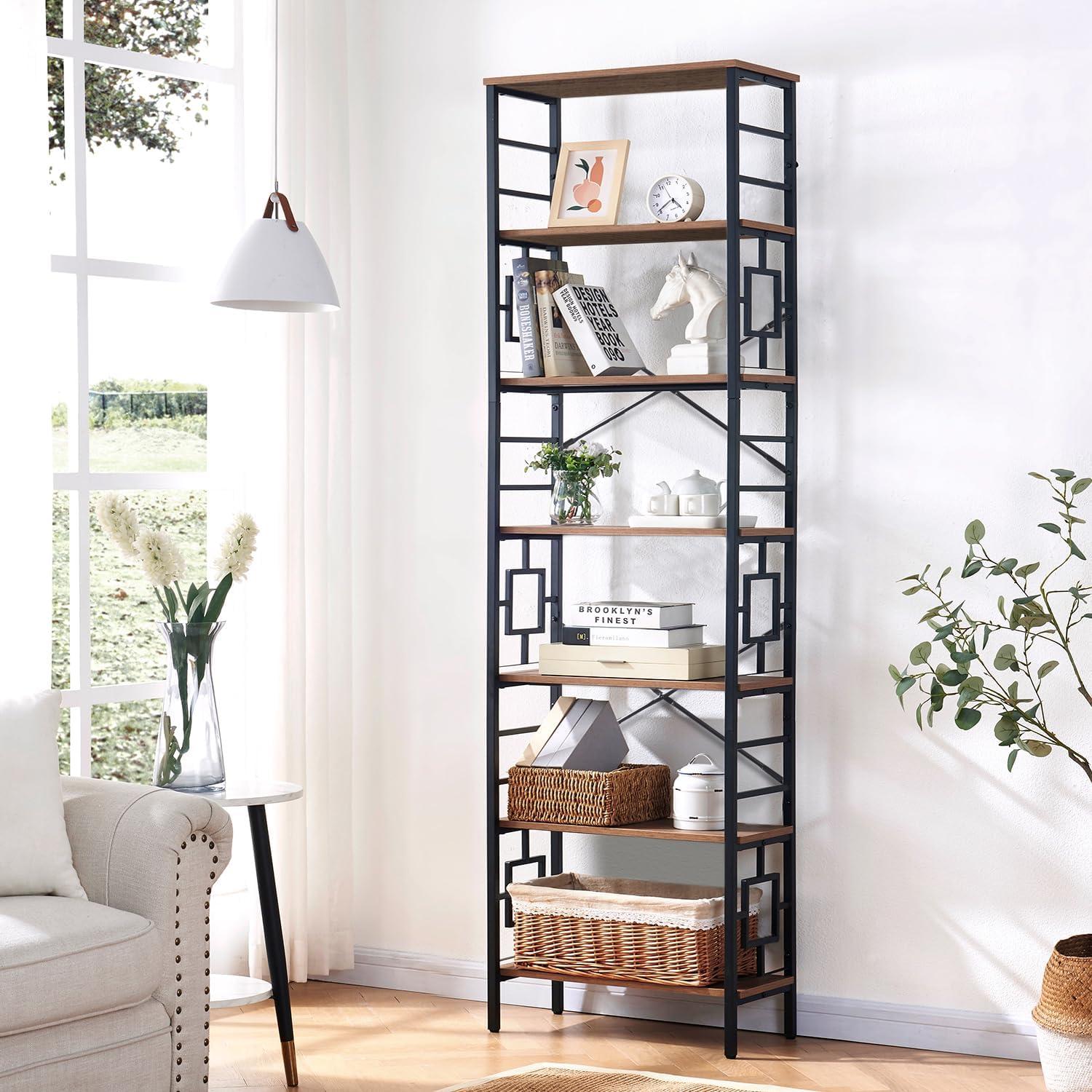 You notice it as you walk by — a tall​ plane of dark metal and warm, grained boards that⁤ makes your eye travel up. HOMISSUE’s Tall Bookshelf (the 84‑inch industrial bookcase) sits in your living room with its shelves stacking ‌toward the ceiling, quietly claiming vertical real estate. Up close the ‌metal is cool and matte under your palm, ⁣the wood-like panels have a faint texture that hides small scuffs, ​and the whole thing ⁢reads‌ visually heavy without feeling clumsy. Light from the ⁢window ‍slips ‌through the open ⁢sides and paints thin shadows​ between the shelves, so the books seem to step down and⁤ back into ‍the ⁣room. An⁢ X-brace at the rear⁣ gives it a planted, non-wobbly presence — more an architectural rhythm than just⁢ storage.