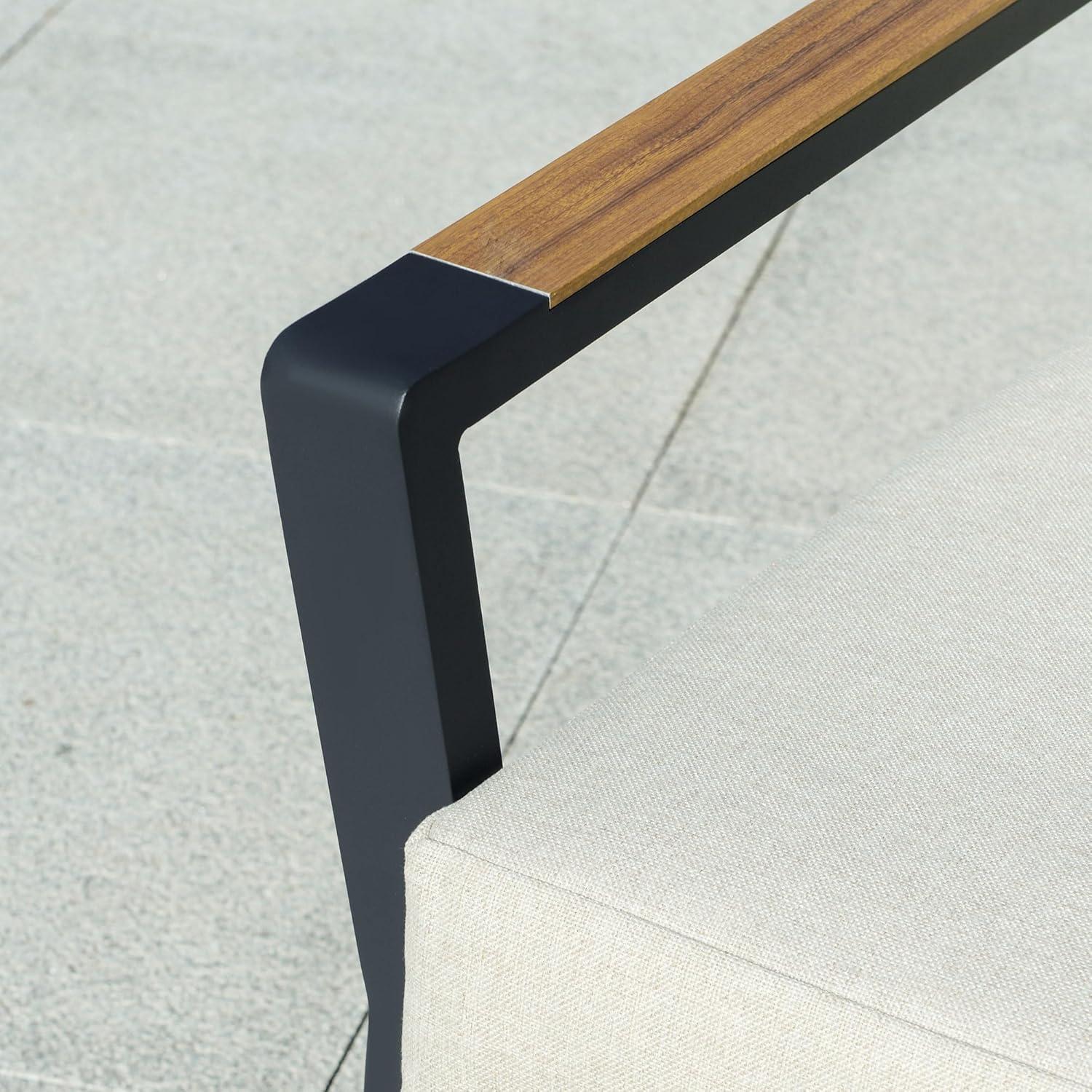 From the moment we settled into this thoughtfully designed outdoor set, it was clear how every element fosters both relaxation and connection. The wide seats and high backrests aren’t just about comfort-they create a naturally inviting space that encourages lingering conversations and shared moments.Plush cushions,wrapped in soft cream fabric,provide the kind of coziness that makes it easy to unwind for hours,whether we’re sipping morning coffee or watching the sunset with friends. The wood grain armrests add a subtle organic touch, grounding the modern aluminum frame with warmth and style, making the area feel less like just furniture and more like an extension of our personal retreat.