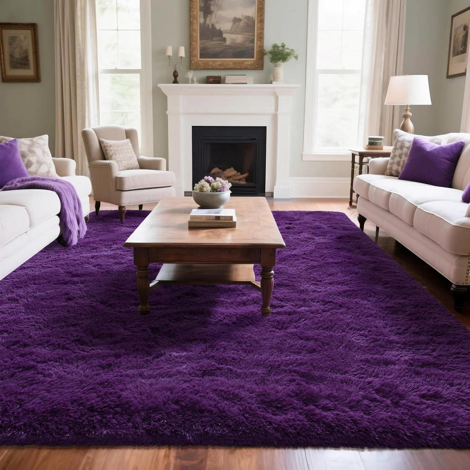 On the flip side, there were a few considerations to keep in mind. Patience was key as the rug needed 1-2 days to fully fluff up after unrolling - those first few hours required a bit of mental adjustment as the fibers slowly soared to their plush potential. Cleaning demanded some gentle TLC: low-suction vacuuming and mild soap spot treatments were best to preserve its delicate softness and vibrant dark purple hue. Also, the care instructions recommended keeping it away from high heat and ensuring it always rested on dry floors, which meant a bit more mindfulness in placement and maintenance than our usual go-to rugs.