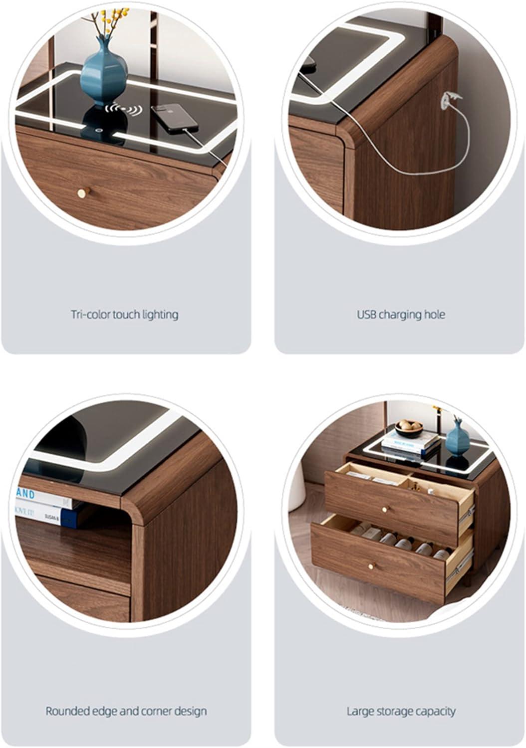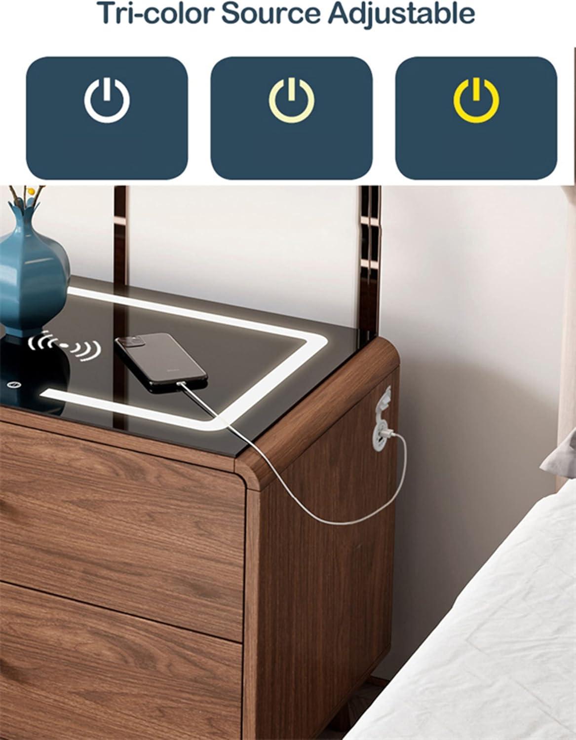 Our experience with this bedside table has been truly impressive, combining modern technology with practical design. The wireless charging feature works flawlessly-simply placing our compatible phones on the designated area instantly initiates charging without any fumbling with cords. The built-in LED night light is both elegant and sensitive to touch, offering three adjustable colors that create a soothing atmosphere without harsh glare or flicker. This feature alone has transformed our nightly routine, providing just the right amount of illumination for reading or relaxing without disturbing sleep.