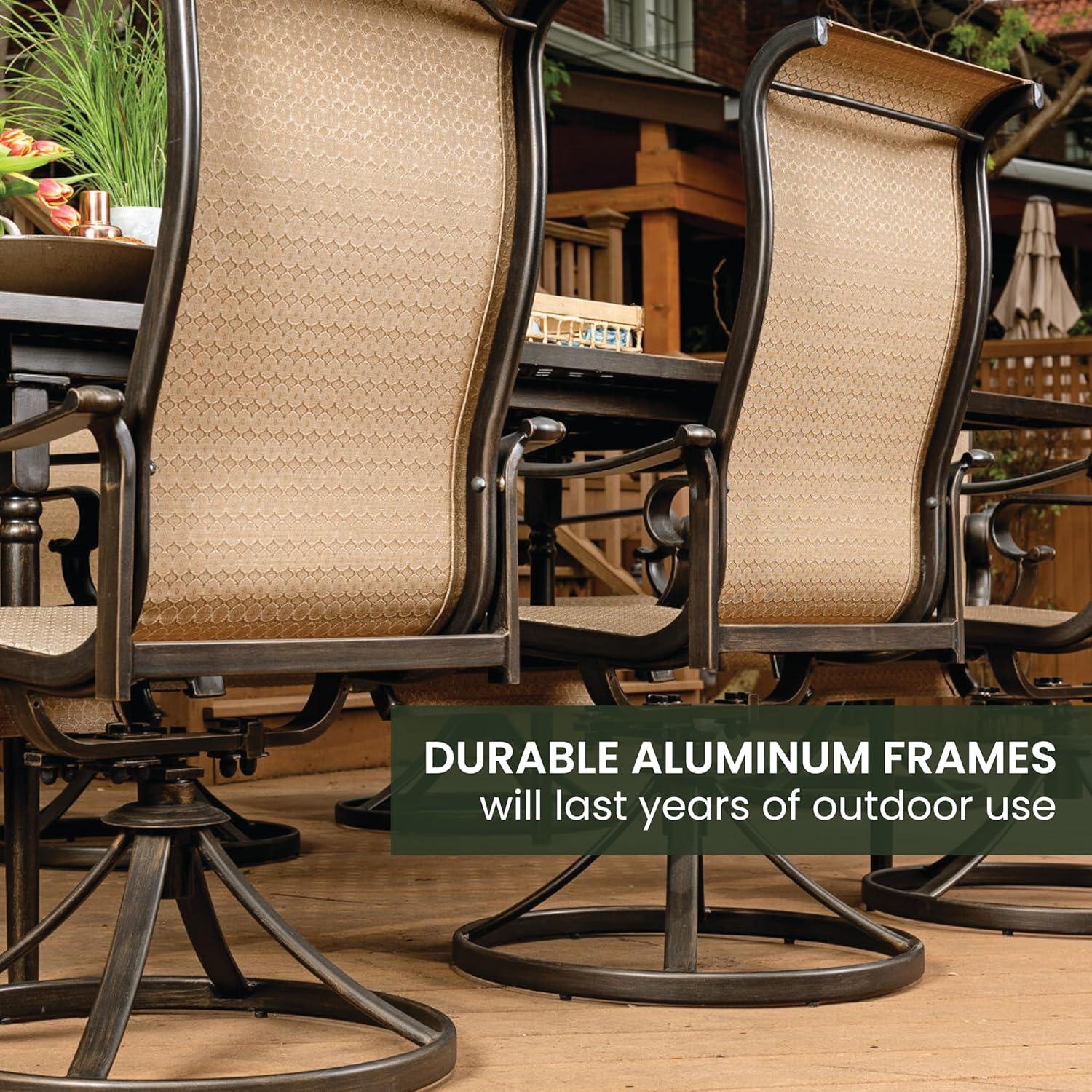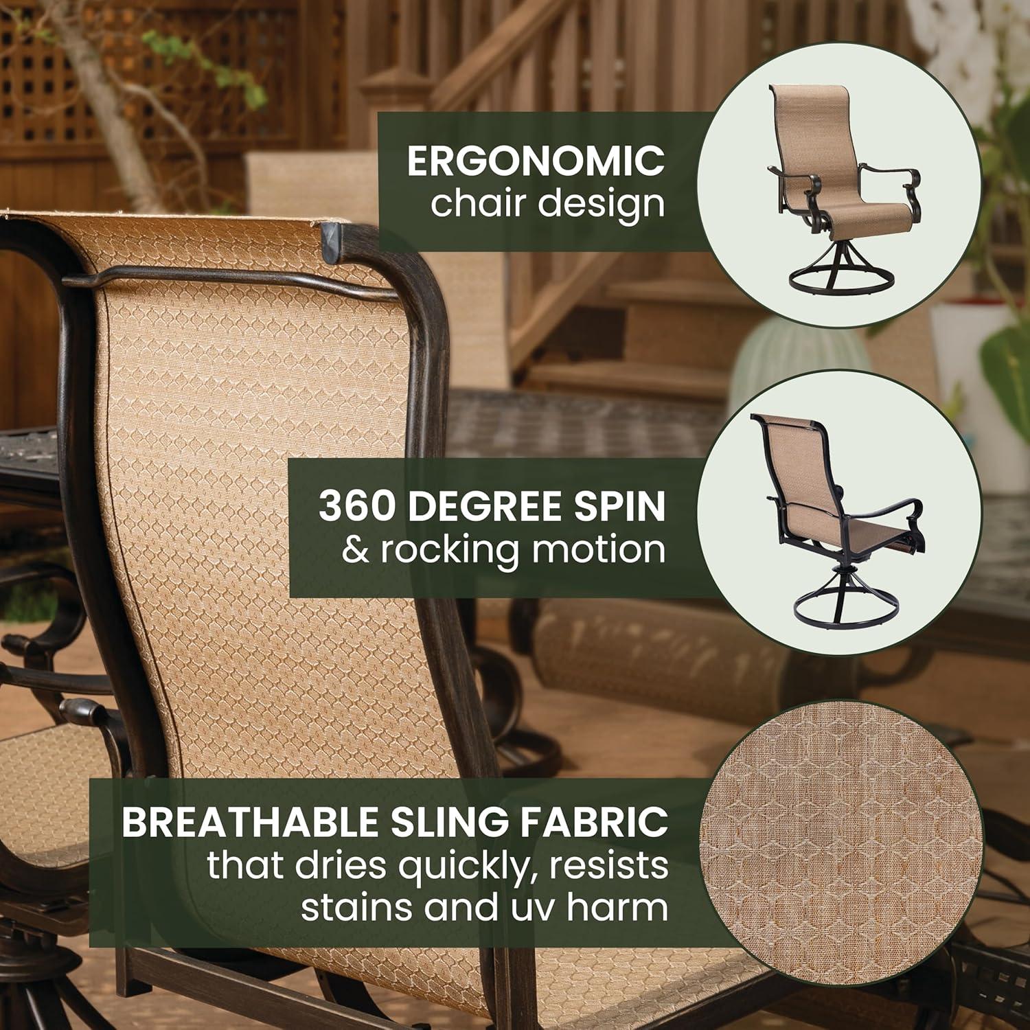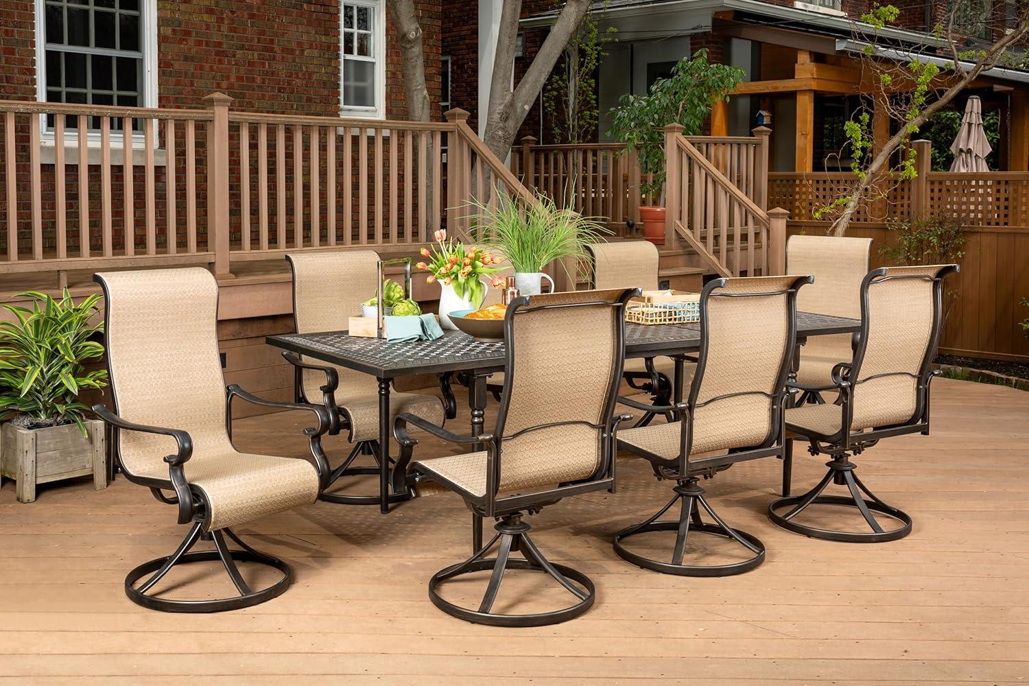 This dining set is an excellent fit for those who value both style and versatility in their outdoor living space. If you frequently host backyard BBQs, family gatherings, or celebrations that call for accommodating several guests comfortably, this collection easily expands to welcome up to eight people with no hassle. The smooth swivel rockers, designed with contoured sling fabric, offer exceptional ergonomic support that keeps everyone relaxed for hours, making it perfect for long summer evenings or casual outdoor dining under the stars.
