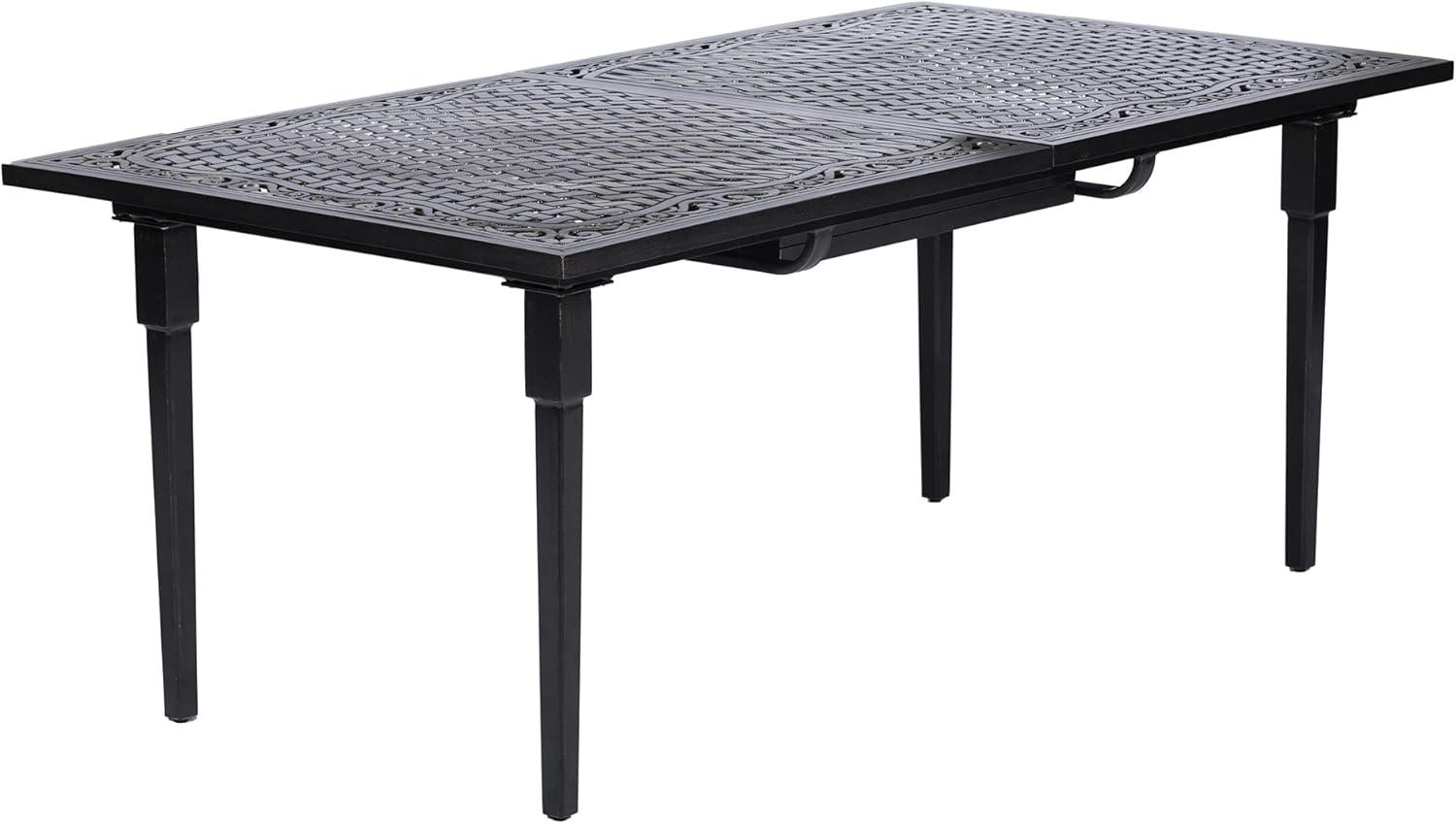 The expandable rectangular table proves to be an incredibly practical centerpiece for any outdoor setting. With the ability to extend from 76 inches to a spacious 102 inches, it effortlessly adapts to varying group sizes, giving us the flexibility to host intimate dinners or larger gatherings without hassle. The table’s sturdy cast-aluminum construction, finished with a UV-resistant powder coating, ensures durability against rust and corrosion-making it perfectly suited to withstand the elements season after season. not only does the intricate lattice and scroll design enhance aesthetic appeal, but the weather-resistant surface also requires minimal maintenance, simply a quick wipe to keep it looking fresh and inviting.