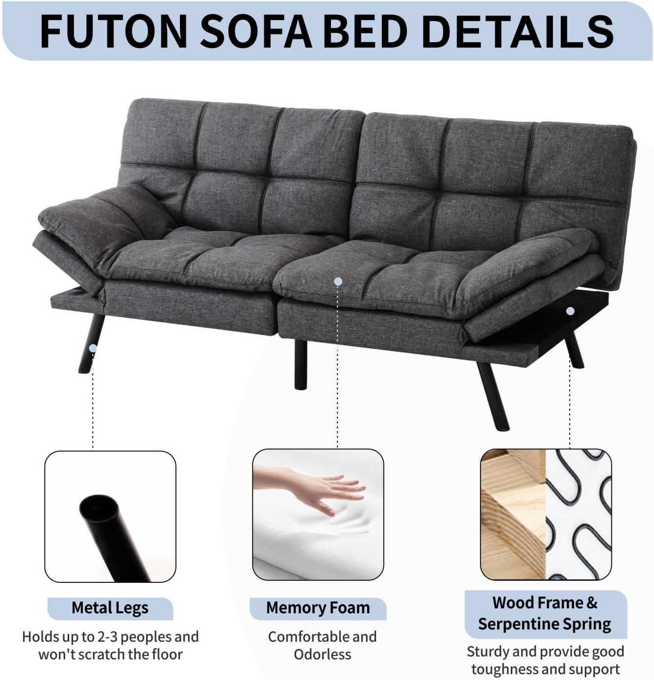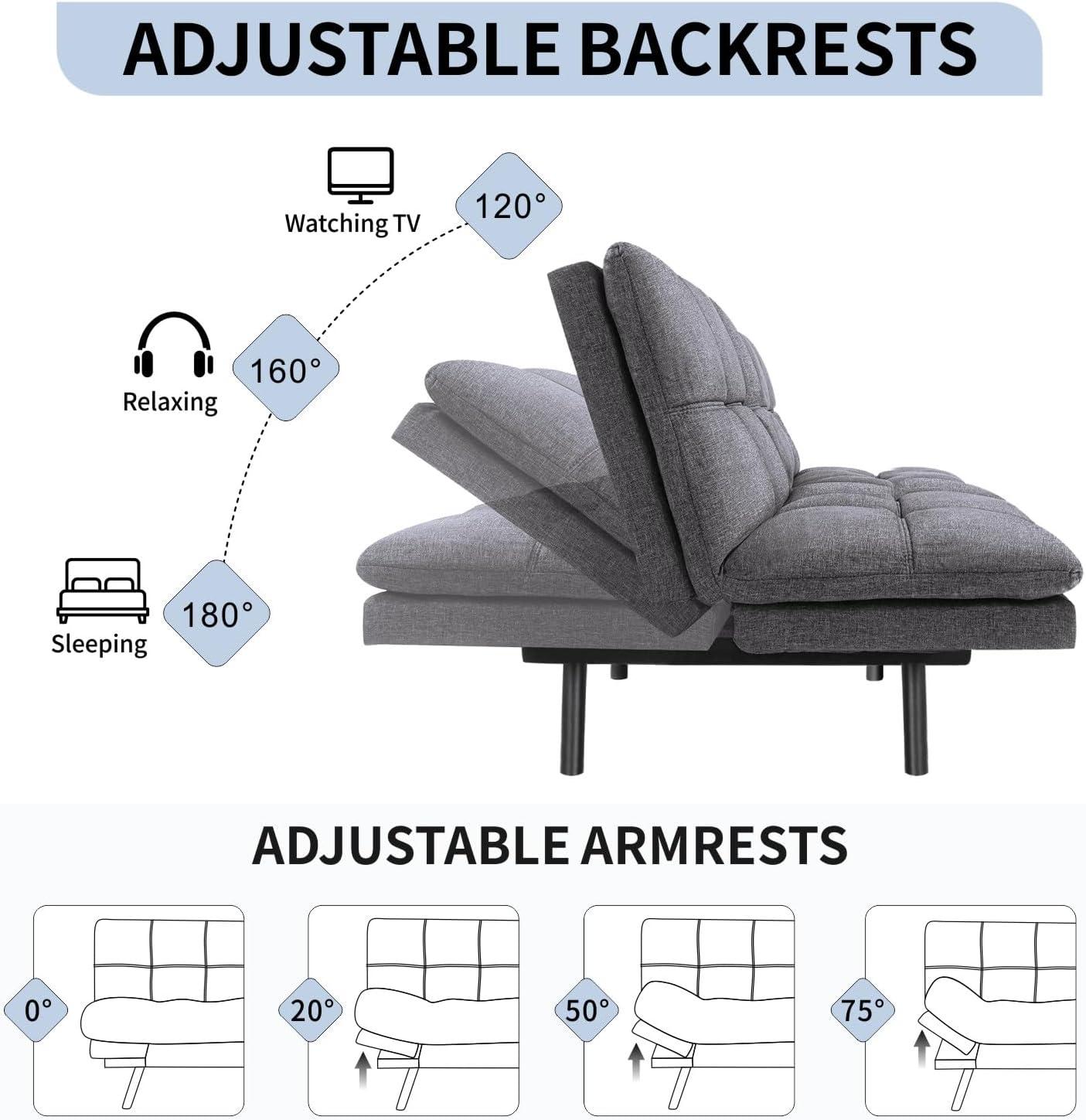 After spending time with this futon, we appreciate how effortlessly it blends comfort with versatility. The memory foam cushioning offers extraordinary support without feeling too firm, making both sitting and sleeping pleasant experiences. adjustable backrests and armrests further enhance its adaptability, letting us customize positions for lounging or napping. Its compact footprint and modern aesthetic make it a perfect fit for smaller living spaces where flexibility is key. Built with sturdy metal legs and easy-to-clean polyester fabric, it balances durability with low maintenance, ideal for everyday use in apartments, offices, or guest rooms.