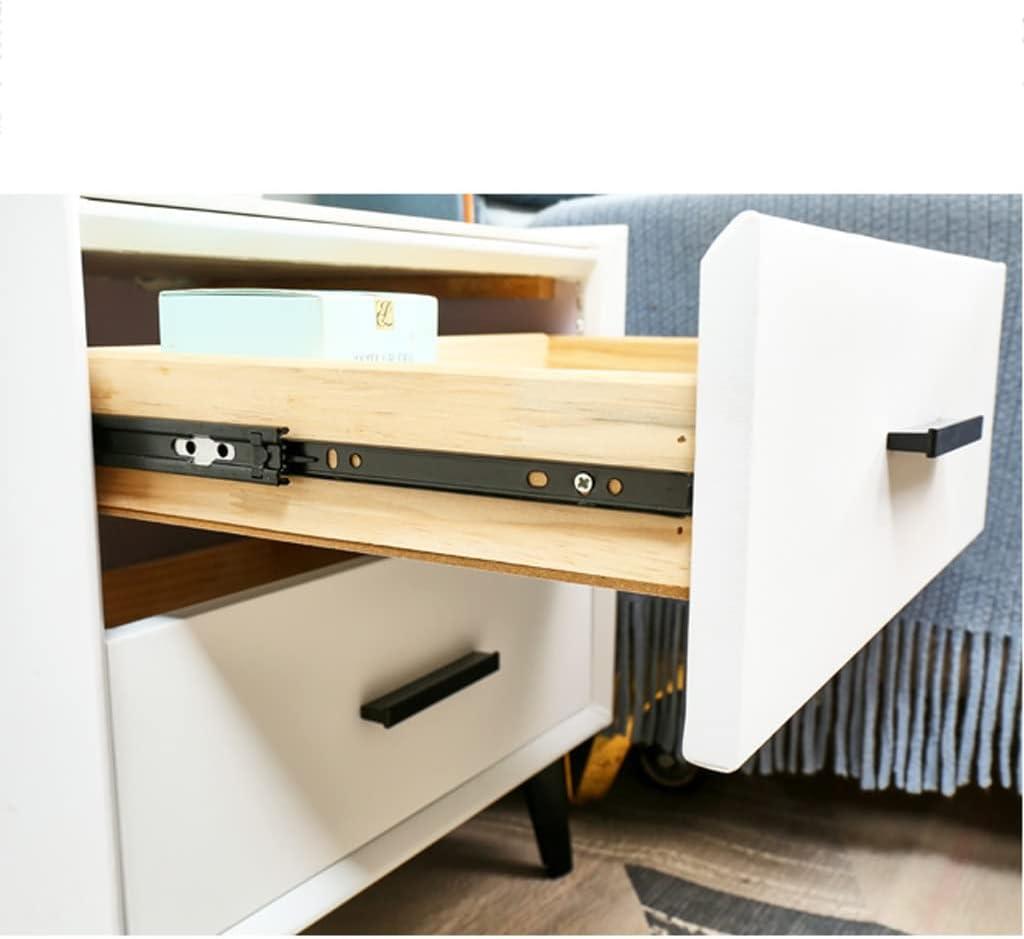 After spending time with this piece, we truly appreciate its balance of style and practicality. The compact dimensions make it a versatile fit for various spaces, whether next to your bed or in a cozy reading nook. The wood-based panels combined with sleek metal legs give it a modern yet timeless look that easily complements different décor styles. The double drawer design impressed us with its smooth, silent glide and ample storage capacity, perfect for keeping essentials organized without cluttering the surface.We also found the metal handles offer a sturdy grip while adding a subtle touch of sophistication.